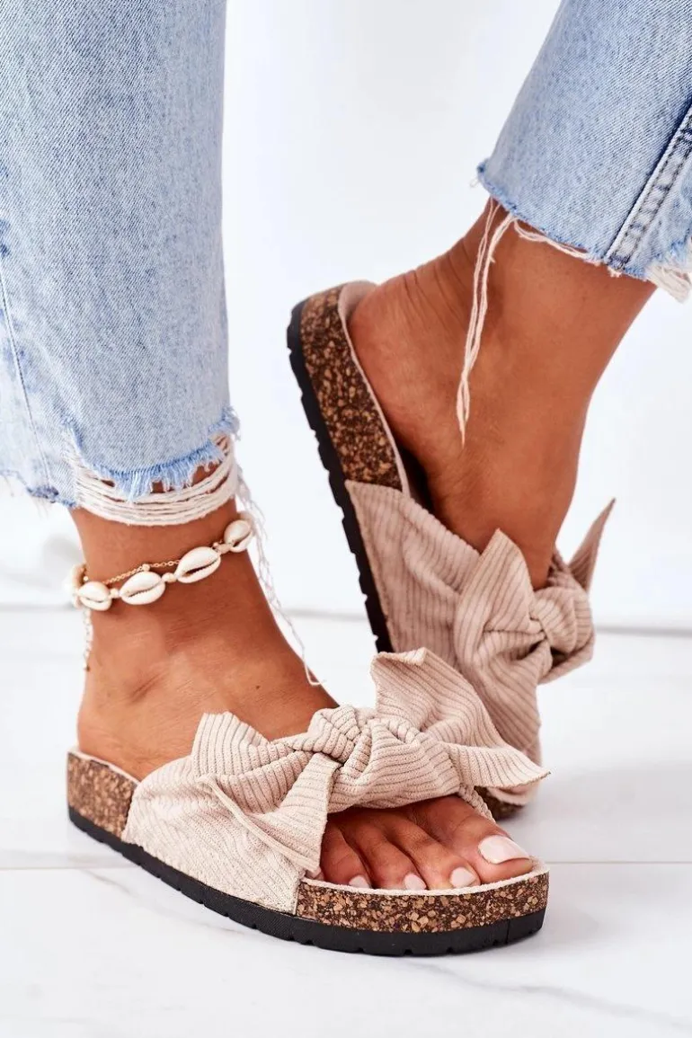 Sztruksowe Klapki Na Korku Beżowe Summertime