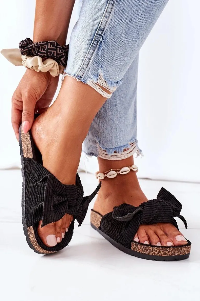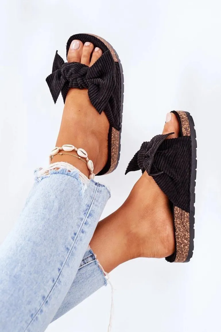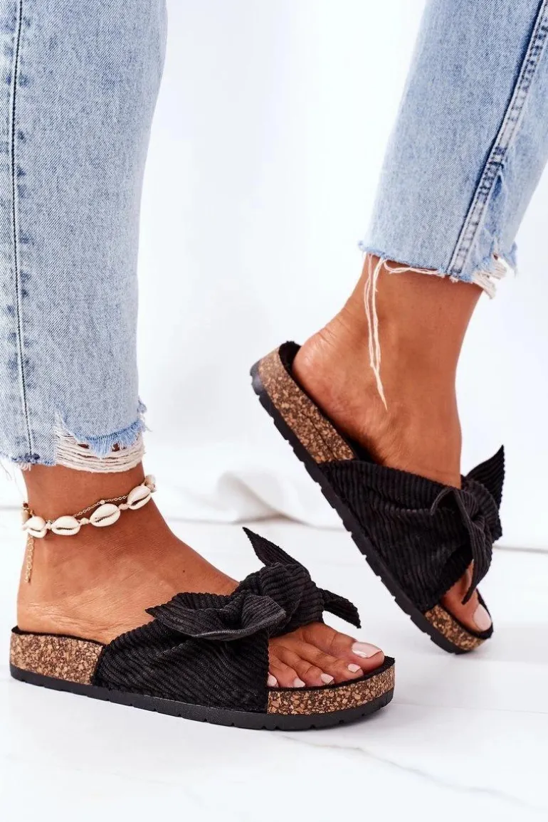 Sztruksowe Klapki Na Korku Czarne Summertime