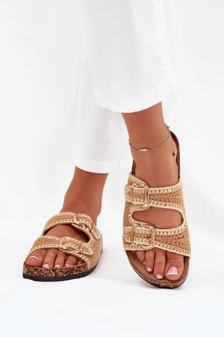 Szydełkowe klapki damskie na korkowej platformie to wyjątkowa propozycja na ciepłe dni. Dzięki profilowanej wkładce z eko zamszu zapewniają komfort i wygodę przez cały dzień. Dwie złote klamry dodają im eleganckiego charakteru. Idealne do letnich stylizacji, te klapki będą doskonałym wyborem do sukienek, spódnic i spodni. Przy wyborze rozmiaru prosimy sugerować się tabelą rozmiarów.