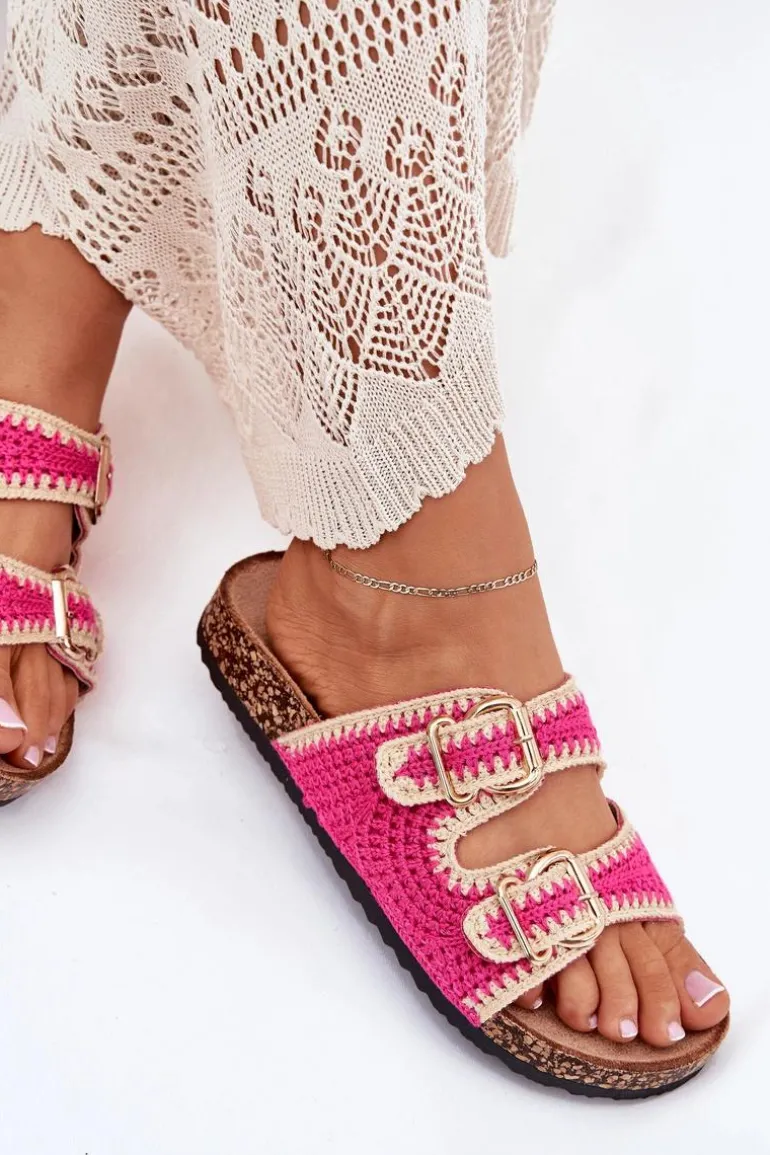 Szydełkowe klapki damskie na korkowej platformie to wyjątkowa propozycja na ciepłe dni. Dzięki profilowanej wkładce z eko zamszu zapewniają komfort i wygodę przez cały dzień. Dwie złote klamry dodają im eleganckiego charakteru. Idealne do letnich stylizacji, te klapki będą doskonałym wyborem do sukienek, spódnic i spodni. Przy wyborze rozmiaru prosimy sugerować się tabelą rozmiarów.