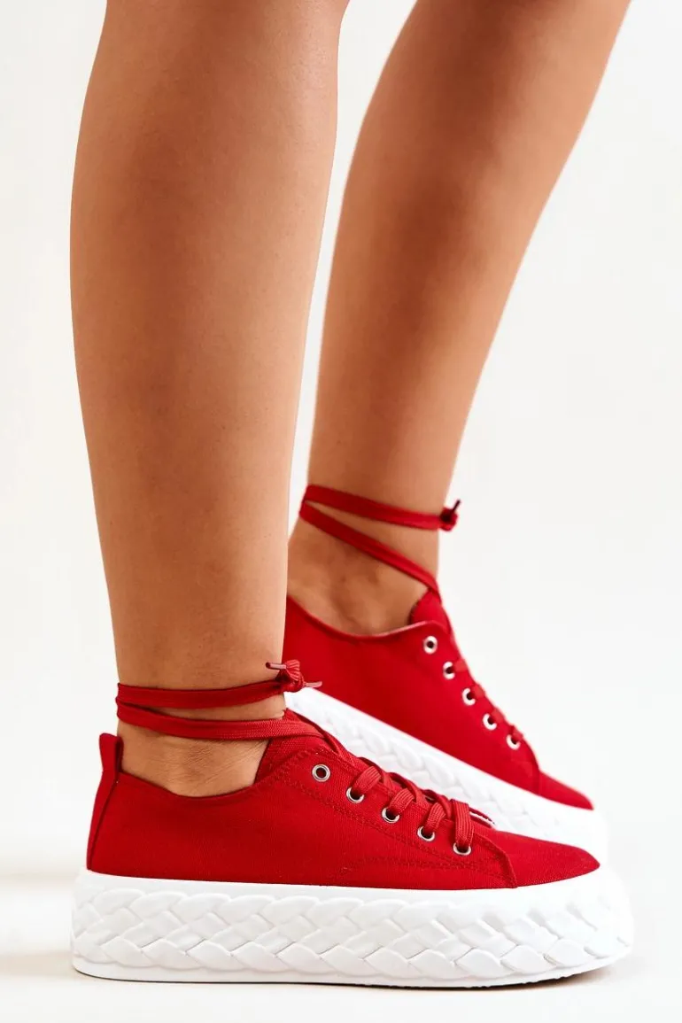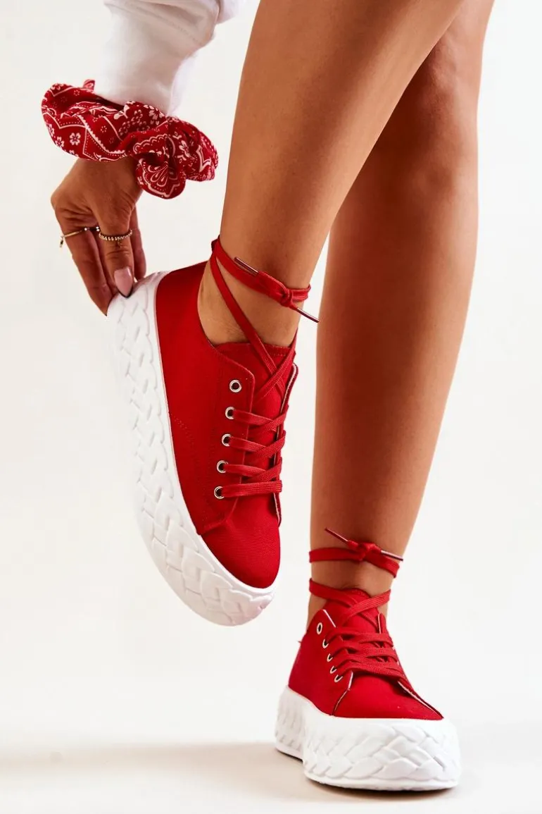 Damskie tenisówki na masywnej platformie pasują do wielu stylizacji. Wykonane z tkaniny. Posiadają materiałową wkładkę. Gumowa platforma jest przyozdobiona pięknym warkoczem. Świetnie sprawdzą się zarówno do spodni jak i spódnic. Wyraź siebie poprzez swój styl i kup te świetne tenisówki już dziś! Przy wyborze rozmiaru prosimy sugerować się tabelą rozmiarów.
