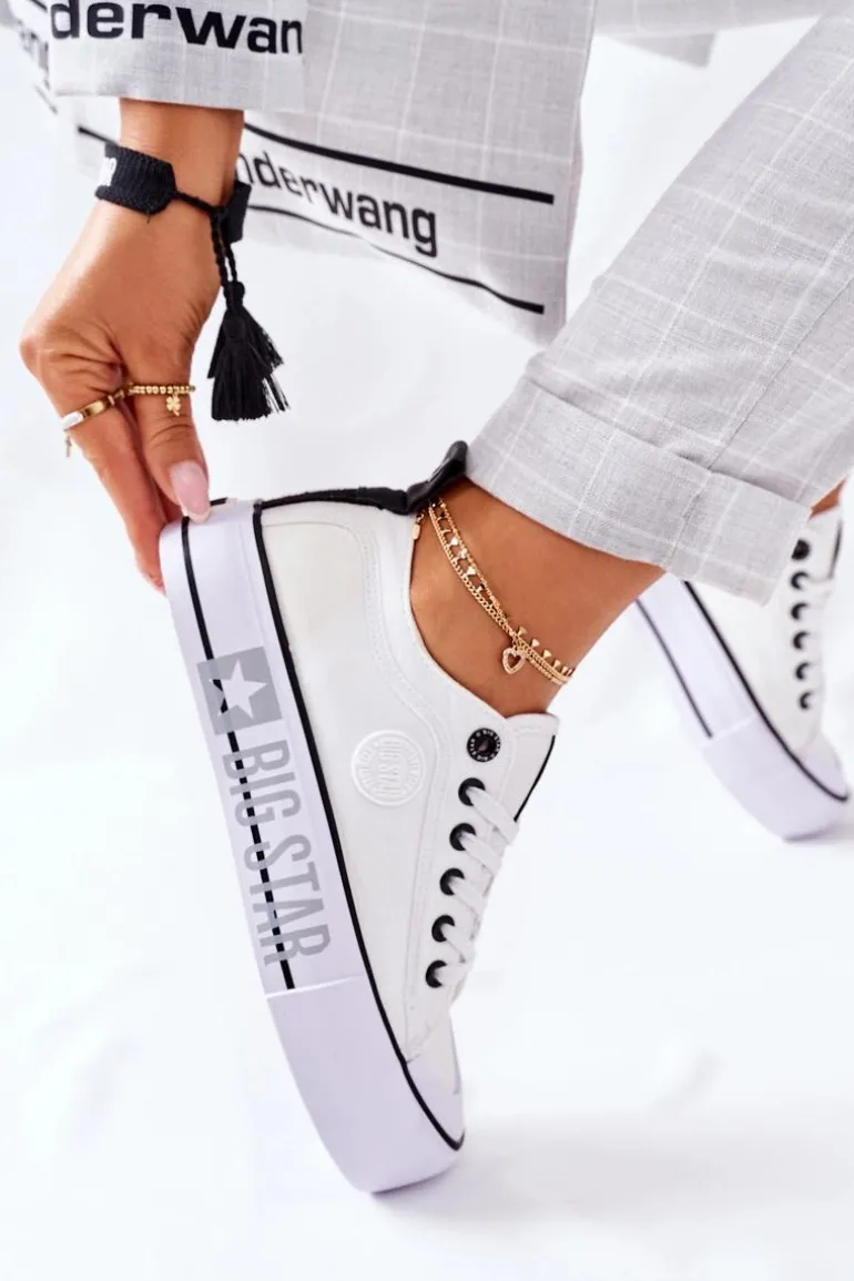 Damskie tenisówki na platformie polskiej marki BIG STAR. Kultowe już trampki pasują do wielu stylizacji. Buty dobrze dopasowują się do kształtu stopy, posiadają miękką, materiałową wkładkę oraz antypoślizgową podeszwę. Koniecznie sprawdź całą naszą kolekcję butów BIG STAR. Przy wyborze rozmiaru prosimy sugerować się tabelą rozmiarów.