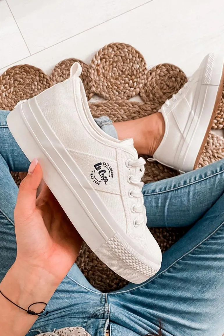 Damskie tenisówki na masywnej platformie marki Lee Cooper. Kultowe już trampki pasują do wielu stylizacji. Buty dobrze dopasowują się do kształtu stopy, posiadają miękką, materiałową wkładkę oraz antypoślizgową podeszwę. Koniecznie sprawdź całą naszą kolekcję butów Lee Cooper. Przy wyborze rozmiaru prosimy sugerować się tabelą rozmiarów.