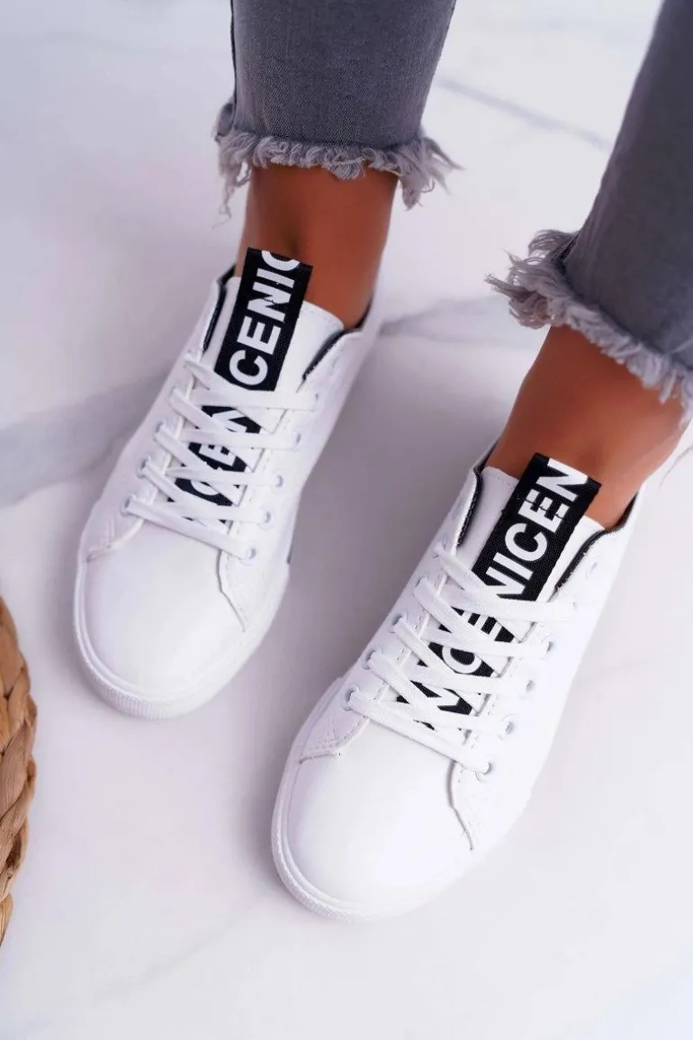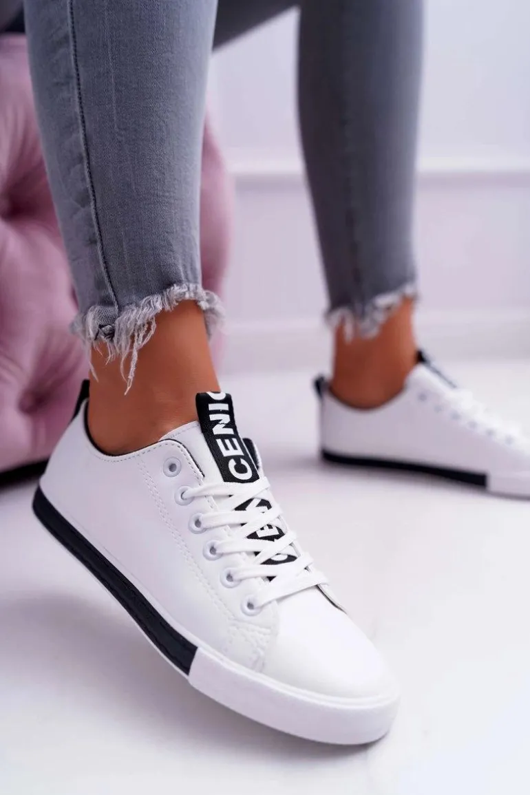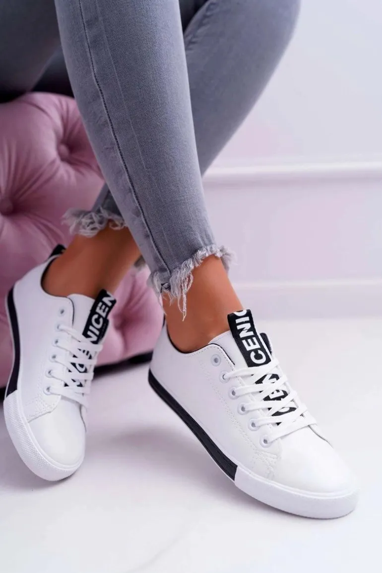 Trampki Damskie Białe Czarny Pasek Nigrid