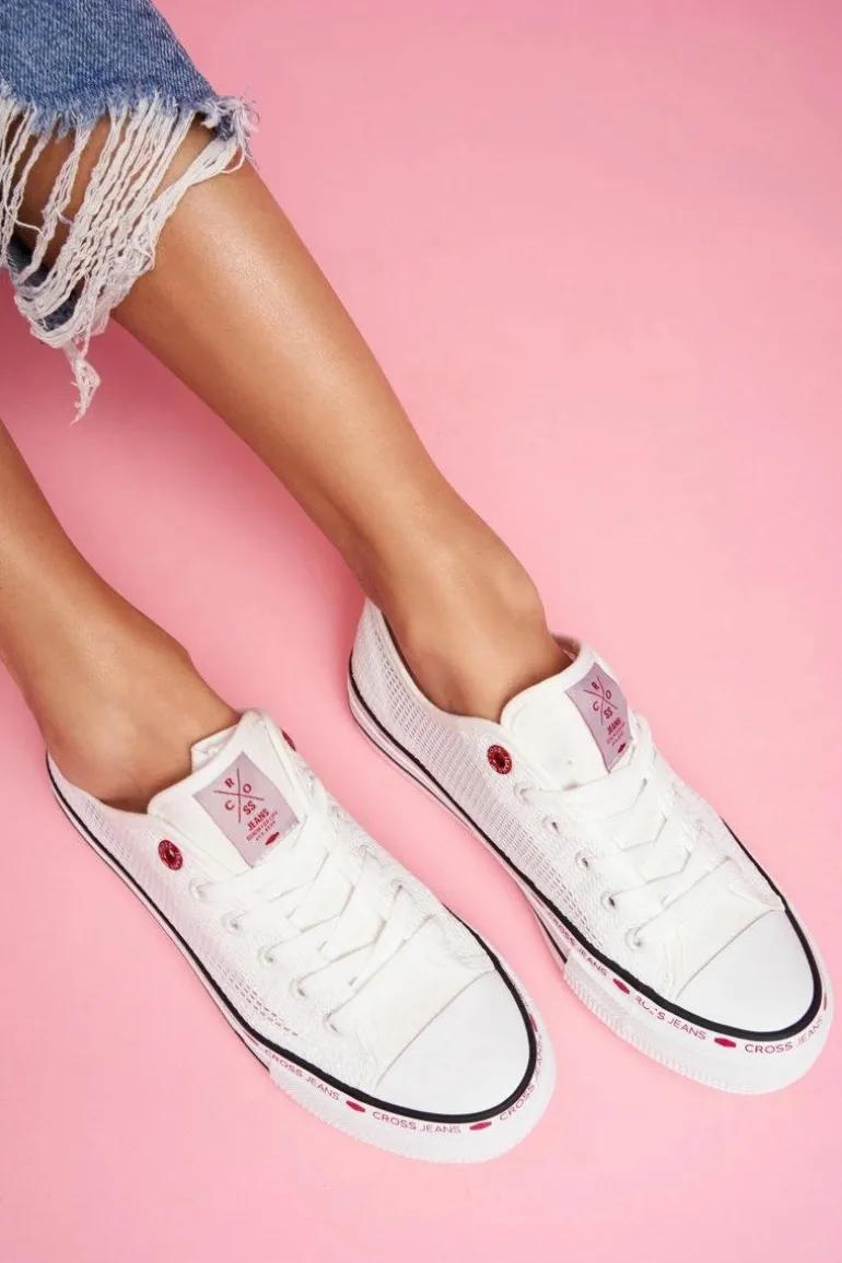 Trampki Damskie Cross Jeans Białe Siateczka FF2R4016C