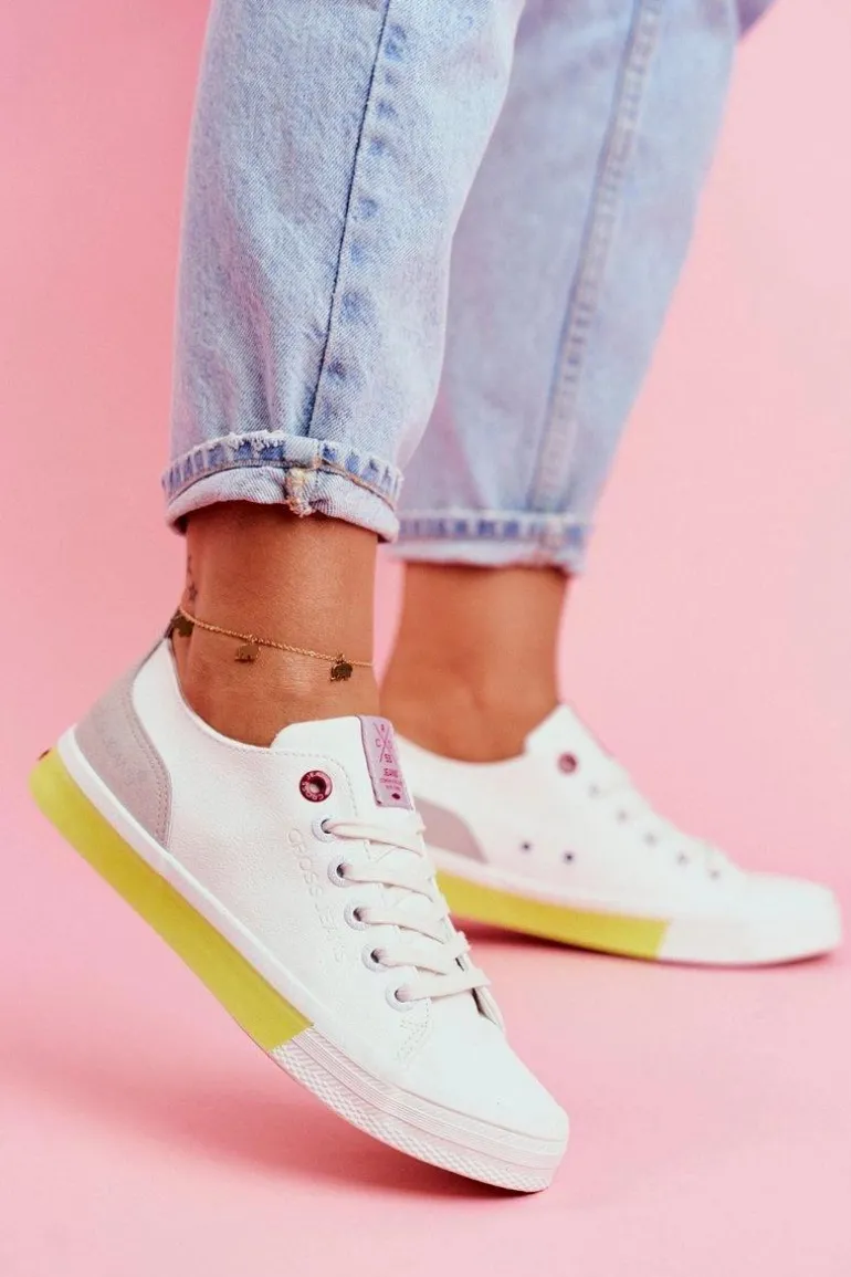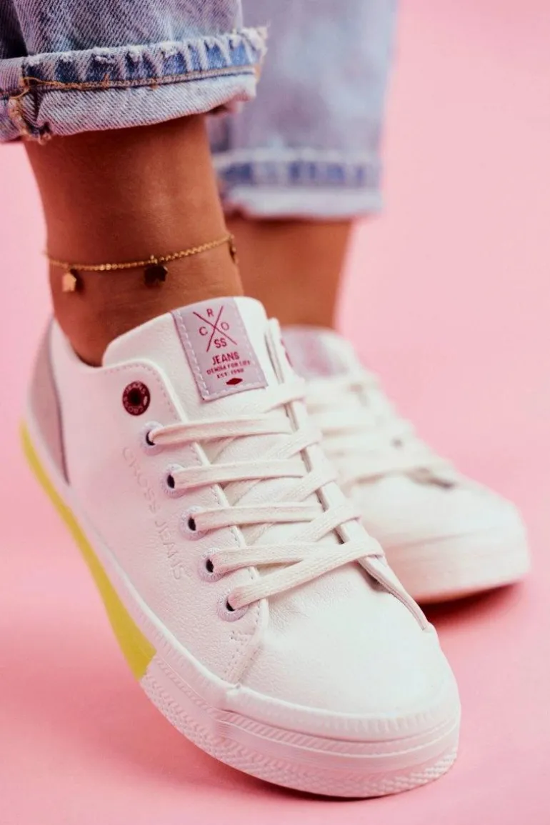 Trampki Damskie Cross Jeans Biało Żółte FF2R4042C