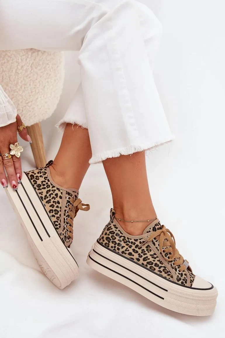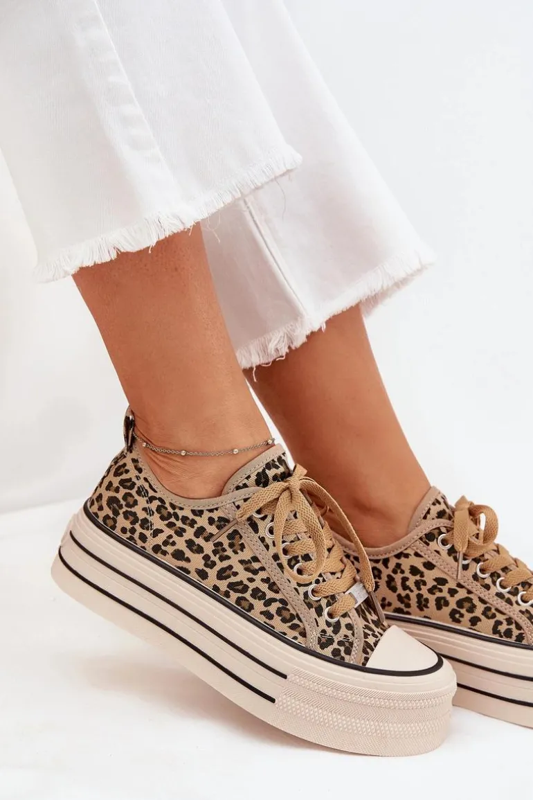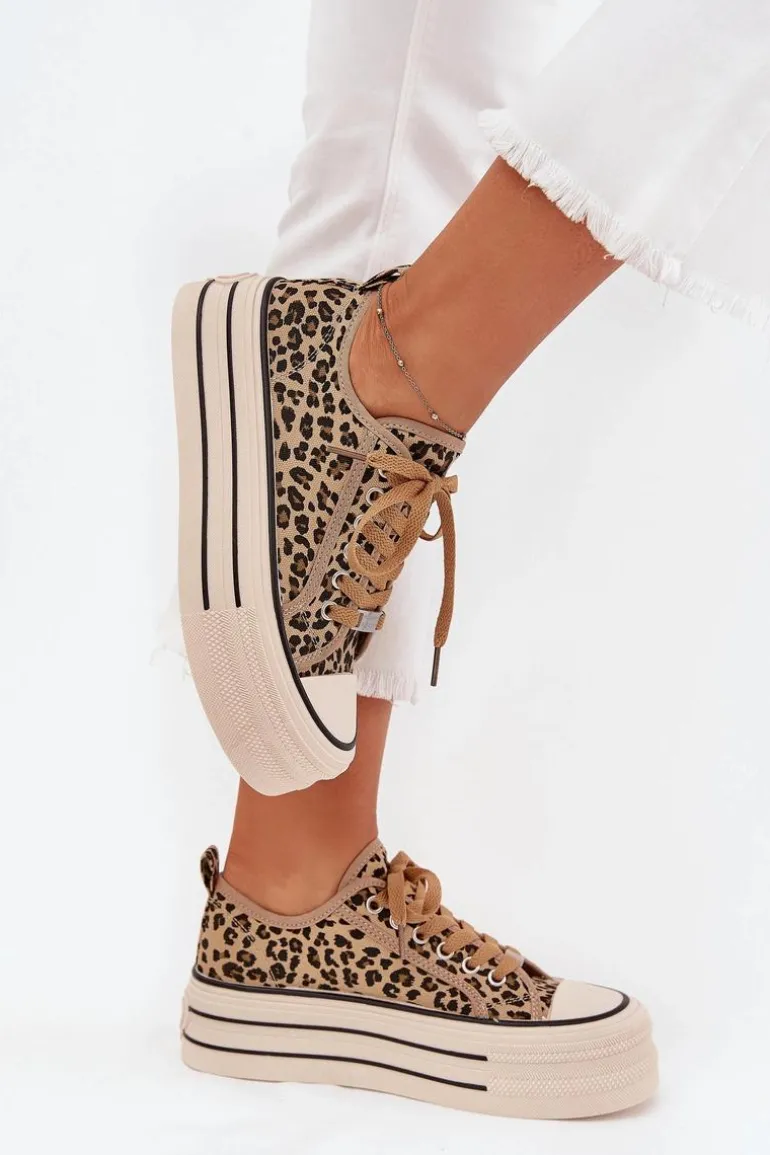 Trampki damskie wykonane z materiału tekstylnego, osadzone na masywnej platformie, która optycznie wysmukla sylwetkę. Niska cholewka i klasyczne sznurowanie zapewniają wygodę oraz idealne dopasowanie. Stylowy fason sprawia, że te trampki doskonale komponują się z codziennymi stylizacjami. Przy wyborze rozmiaru prosimy sugerować się tabelą rozmiarów.