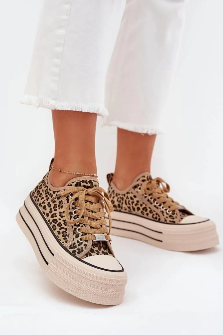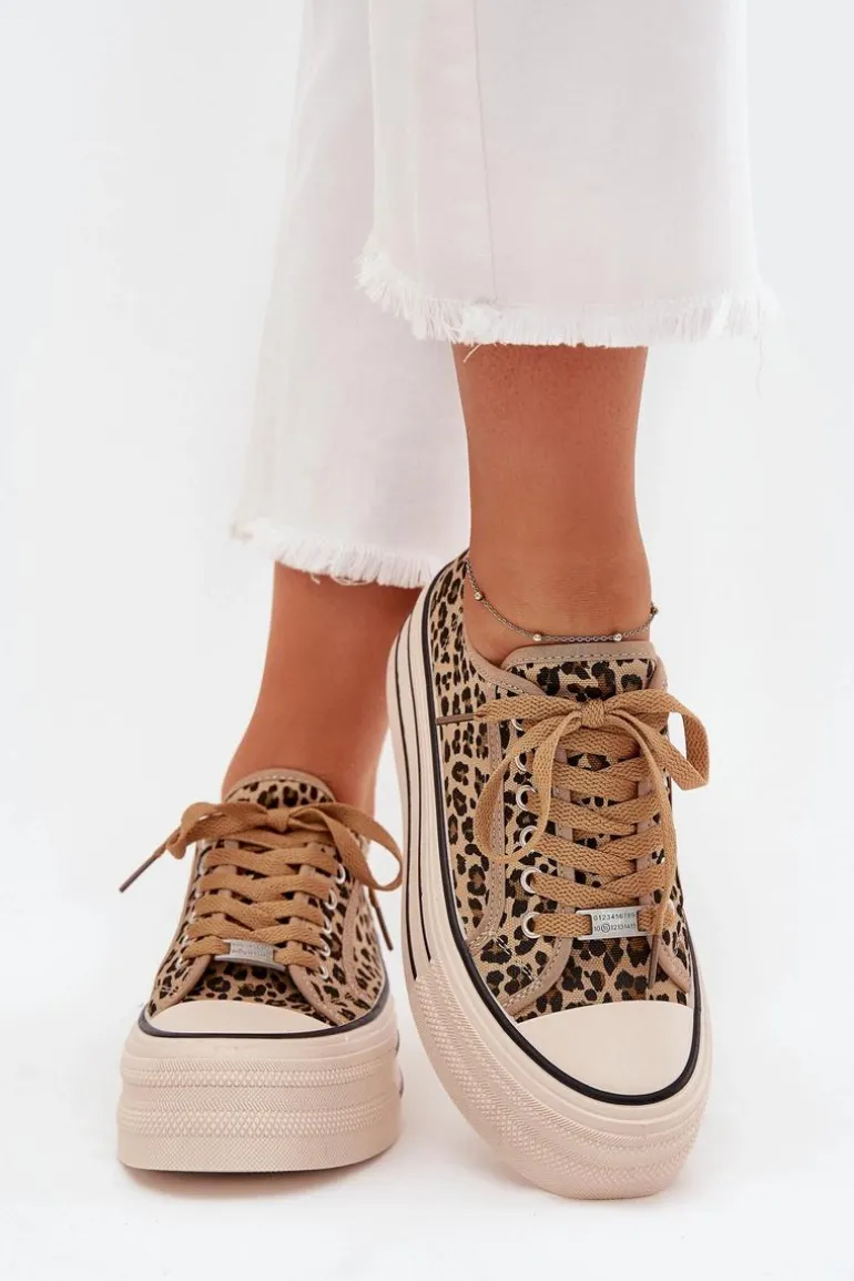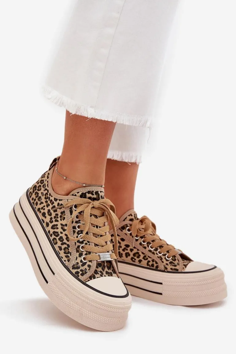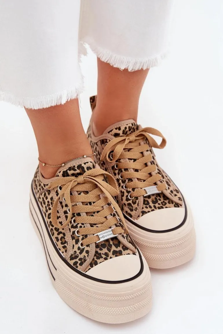 Trampki damskie wykonane z materiału tekstylnego, osadzone na masywnej platformie, która optycznie wysmukla sylwetkę. Niska cholewka i klasyczne sznurowanie zapewniają wygodę oraz idealne dopasowanie. Stylowy fason sprawia, że te trampki doskonale komponują się z codziennymi stylizacjami. Przy wyborze rozmiaru prosimy sugerować się tabelą rozmiarów.