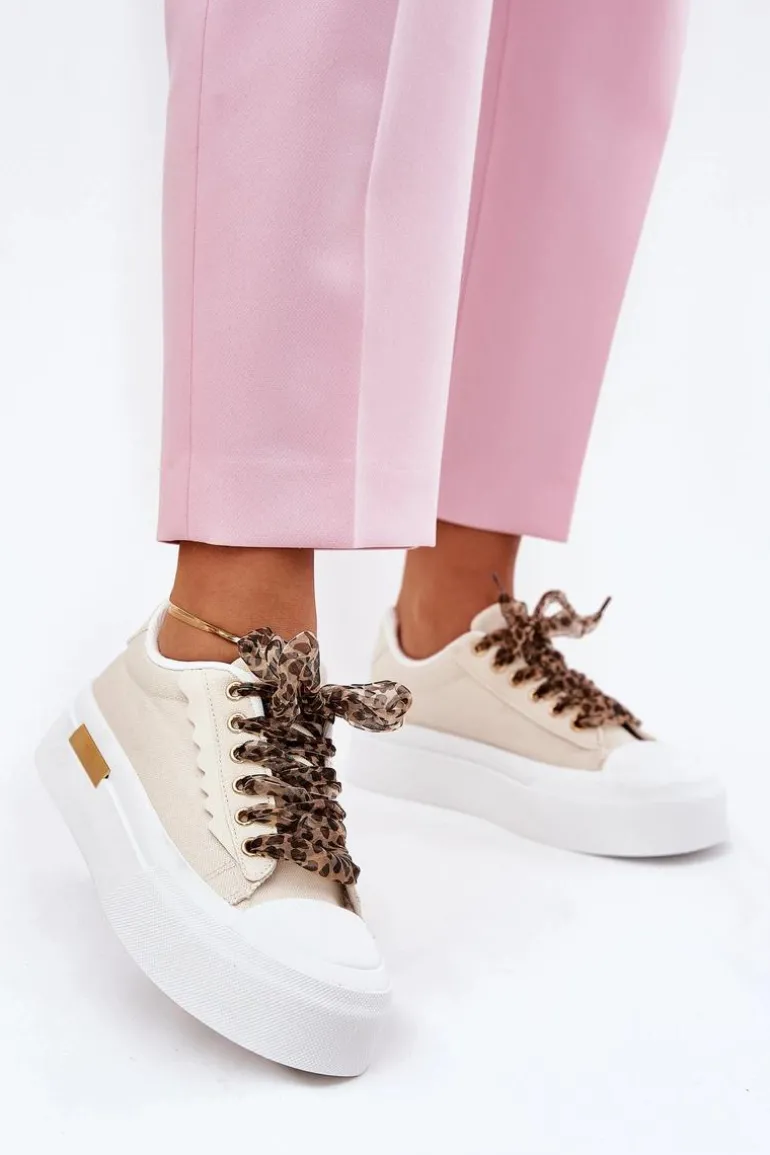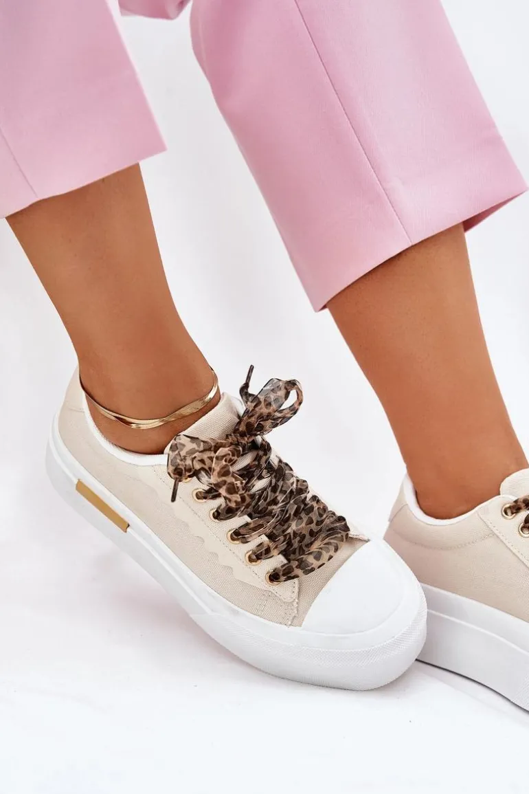 Trampki damskie wykonane z materiału tekstylnego. Osadzone na masywnej platformie, które łączą wygodę z modnym wyglądem. Model wyróżnia się ozdobnym sznurowaniem, które dodaje im charakteru, a zaokrąglone noski zapewniają komfort. Piankowa wkładka pokryta materiałem gwarantuje wygodę przez cały dzień. Idealne do codziennych stylizacji, te trampki będą doskonałym wyborem na każdą okazję. Przy wyborze rozmiaru prosimy sugerować się tabelą rozmiarów.