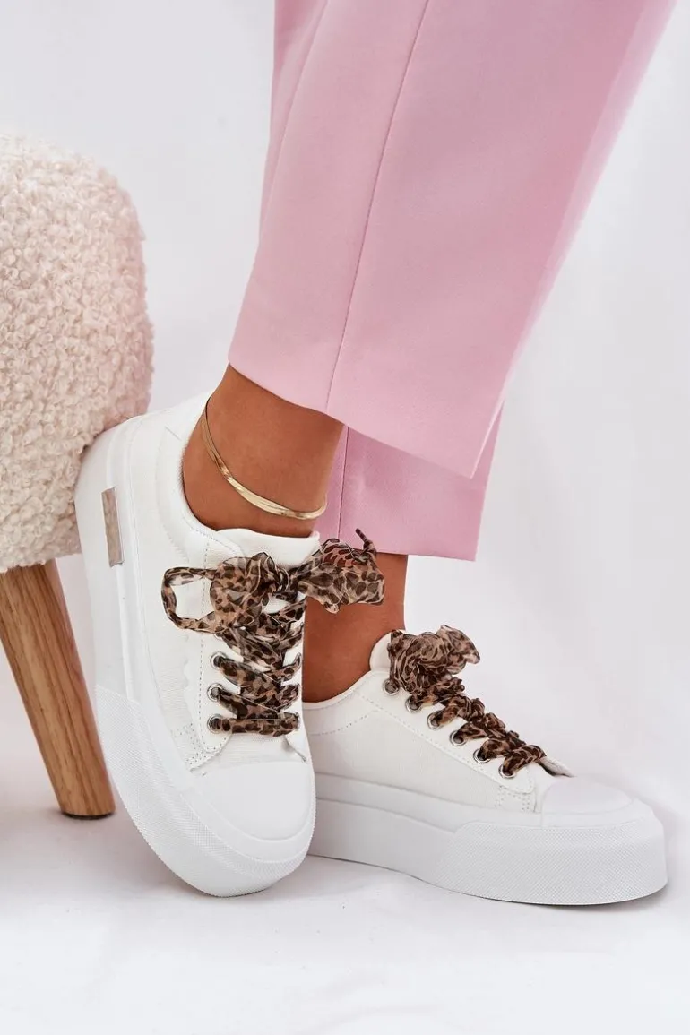 Trampki damskie wykonane z materiału tekstylnego. Osadzone na masywnej platformie, które łączą wygodę z modnym wyglądem. Model wyróżnia się ozdobnym sznurowaniem, które dodaje im charakteru, a zaokrąglone noski zapewniają komfort. Piankowa wkładka pokryta materiałem gwarantuje wygodę przez cały dzień. Idealne do codziennych stylizacji, te trampki będą doskonałym wyborem na każdą okazję. Przy wyborze rozmiaru prosimy sugerować się tabelą rozmiarów.