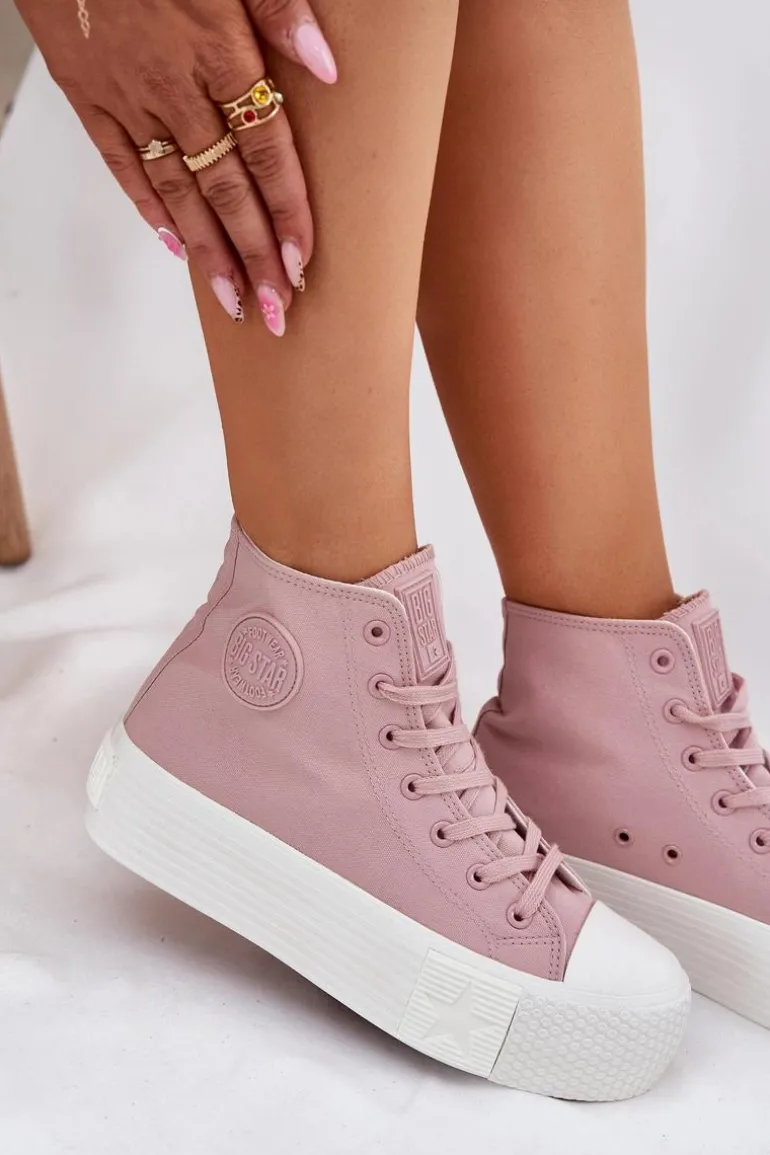 Trampki damskie marki Big Star to połączenie wygody i modnego wyglądu. Wykonane z materiału tekstylnego, osadzone na masywnej platformie, zapewniają stabilność oraz komfort przez cały dzień. Zaokrąglone noski. Cholewka sięgająca za kostkę z logo marki przyciąga wzrok, nadając nowoczesnego charakteru. Stylowy fason sprawia, że te trampki będą doskonałym wyborem do codziennych, casualowych stylizacji. Przy wyborze rozmiaru prosimy sugerować się tabelą rozmiarów.