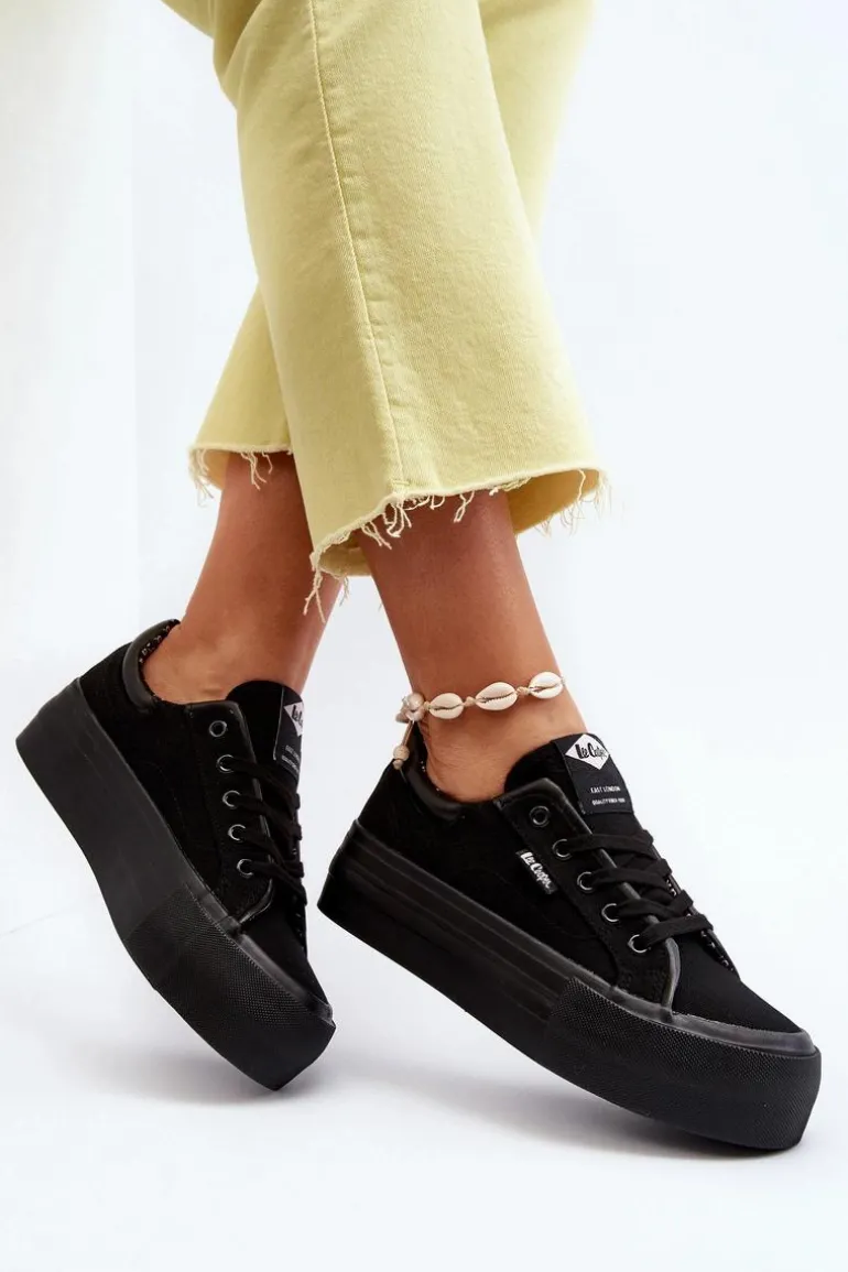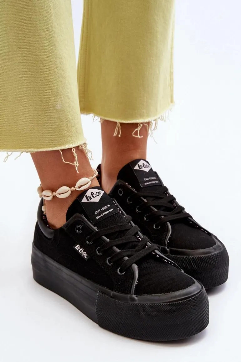 Trampki na masywnej platformie marki Lee Cooper to odpowiedni wybór dla osób ceniących sobie wygodę oraz styl! Wykonane z materiału tekstylnego. Miękka wkładka zapewni komfort podczas użytkowania. Noski zaokrąglone. Z boku wszyte małe logo. Ten klasyczny fason idealnie dopełni wiele wiosenno-letnich stylizacji! Przy wyborze rozmiaru prosimy sugerować się poniższą tabelą rozmiarów.