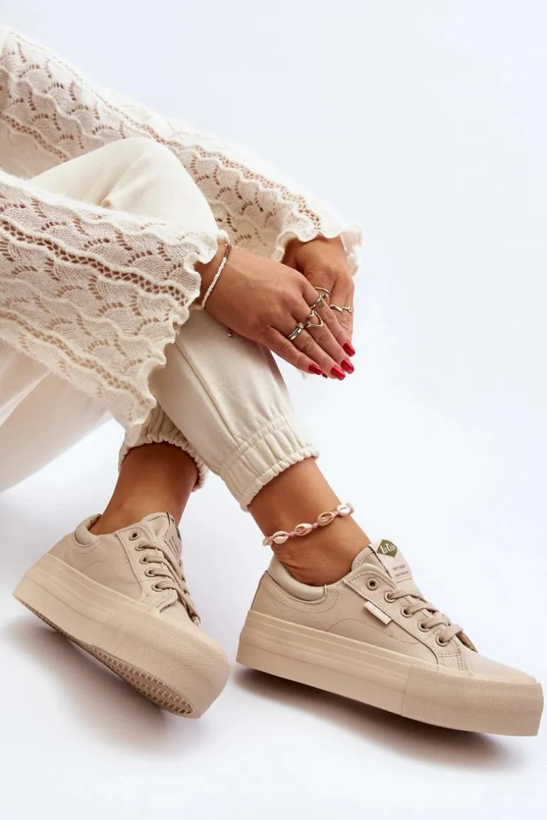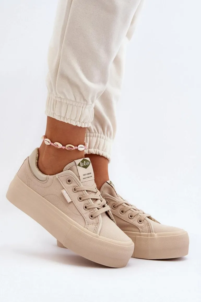 Trampki Damskie Na Platformie Lee Cooper LCW-24-31-2181 Beżowe