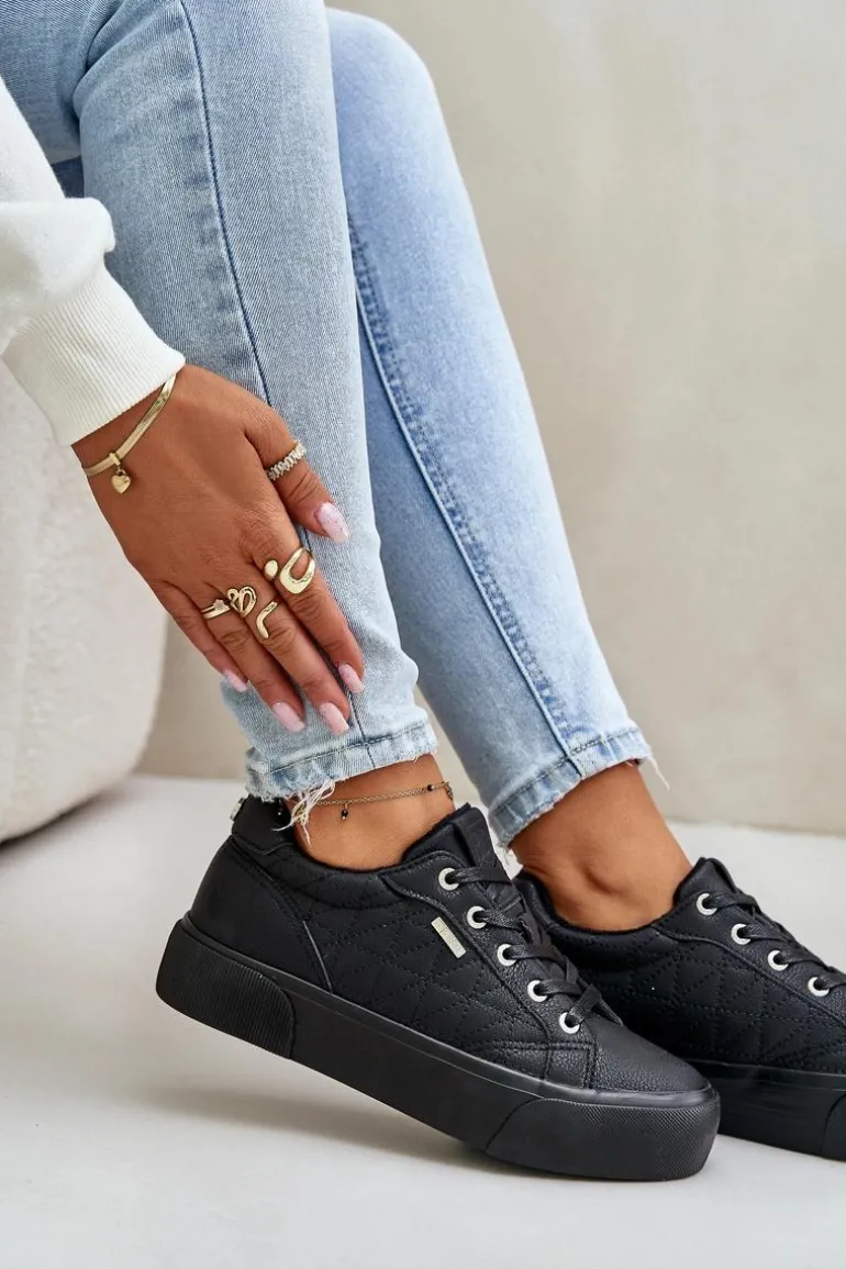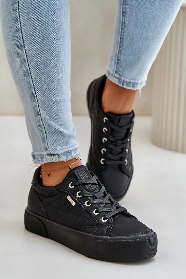 Trampki Big Star wykonane z eko skóry to stylowe i wygodne obuwie na chłodniejsze dni. Osadzone na platformie, dodają charakteru każdej stylizacji, jednocześnie zapewniając komfort noszenia. Ocieplane kocem obuwniczym, świetnie sprawdzą się w chłodniejsze dni, zapewniając ciepło i wygodę. Cholewka ozdobiona przeszyciami. Zaokrąglone noski. Przy wyborze rozmiaru prosimy sugerować się tabelą rozmiarów.