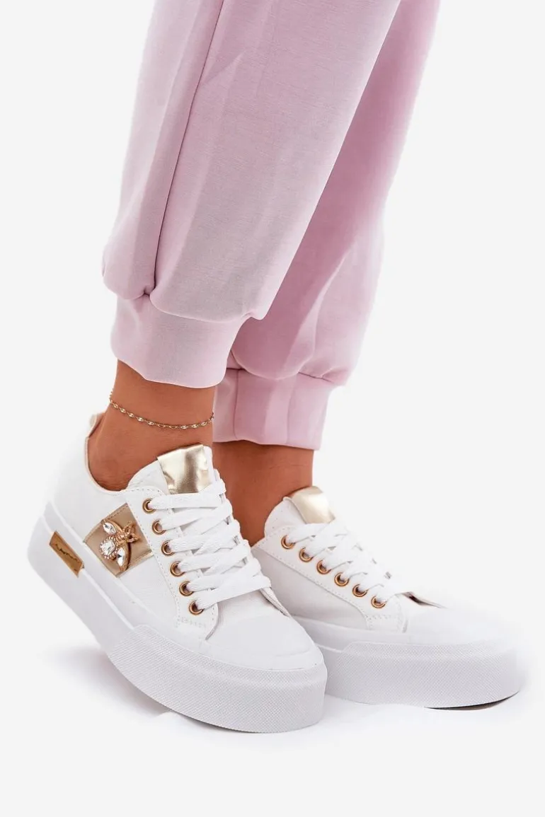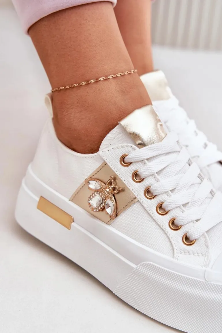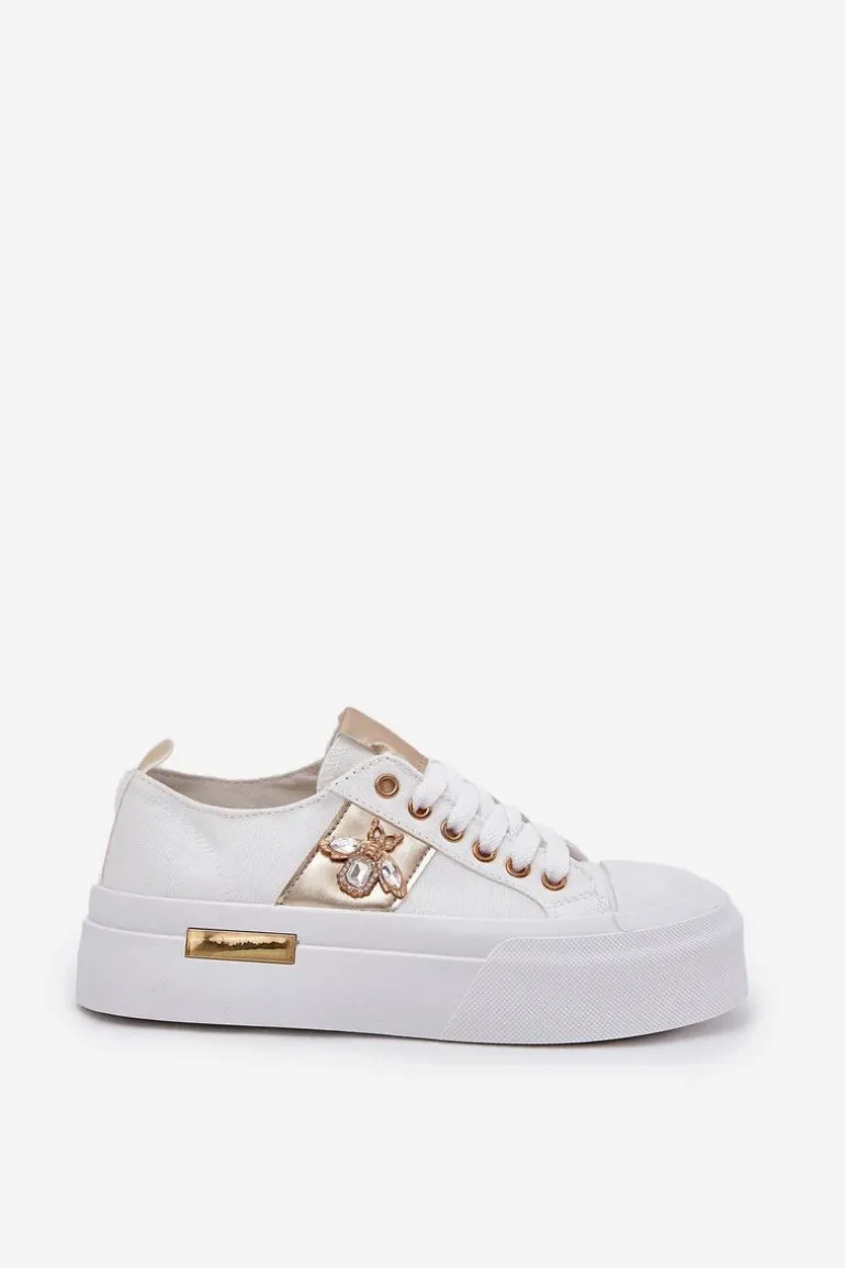 Stylowe trampki damskie wykonane z materiału tekstylnego. Osadzone na masywnej platformie, która dodaje modnego charakteru. Zaokrąglone noski zapewniają wygodę i swobodę ruchu, a ozdobny detal na boku cholewki dodaje im unikalnego stylu. Miękka piankowa wkładka gwarantuje komfort przez cały dzień, zapewniając odpowiednią amortyzację na każdym kroku. Idealne do codziennych stylizacji. Przy wyborze rozmiaru prosimy sugerować się tabelą rozmiarów.