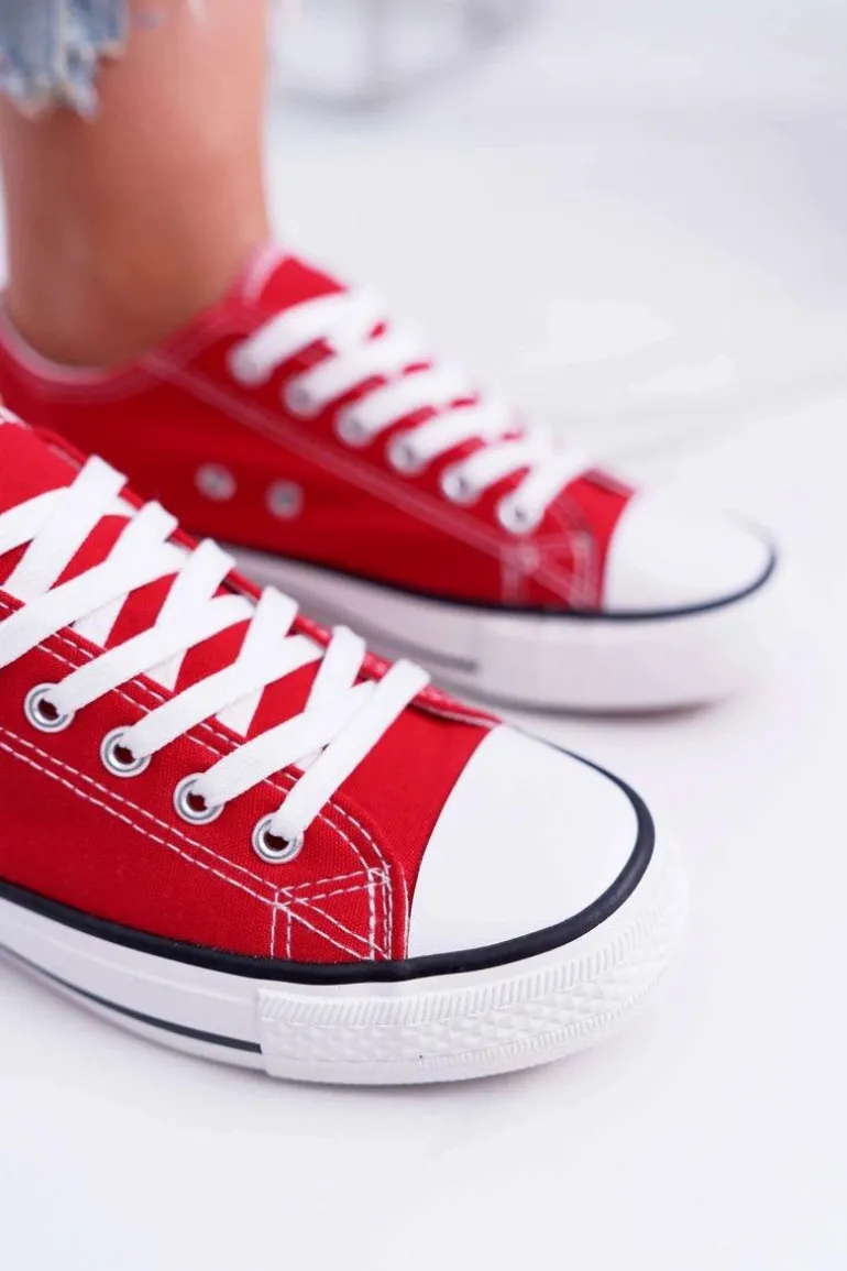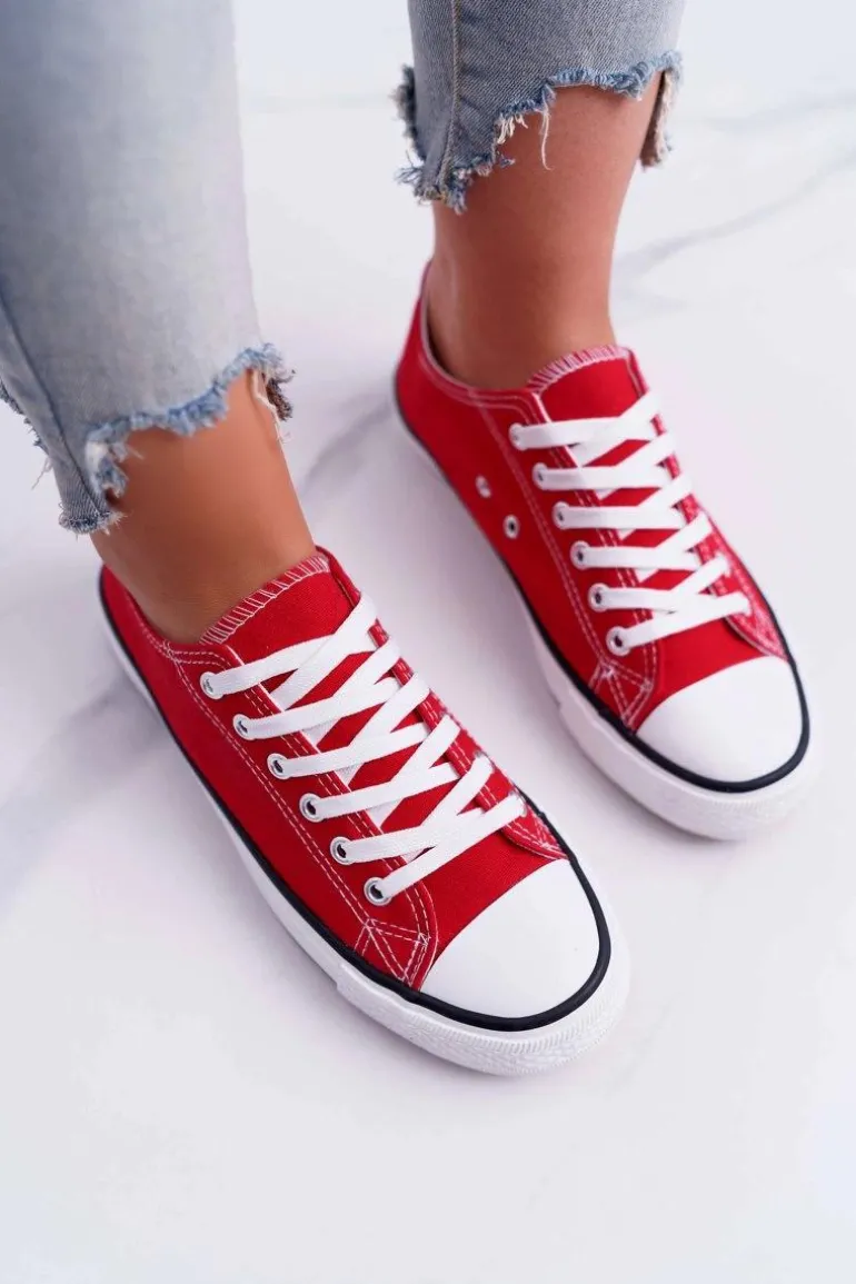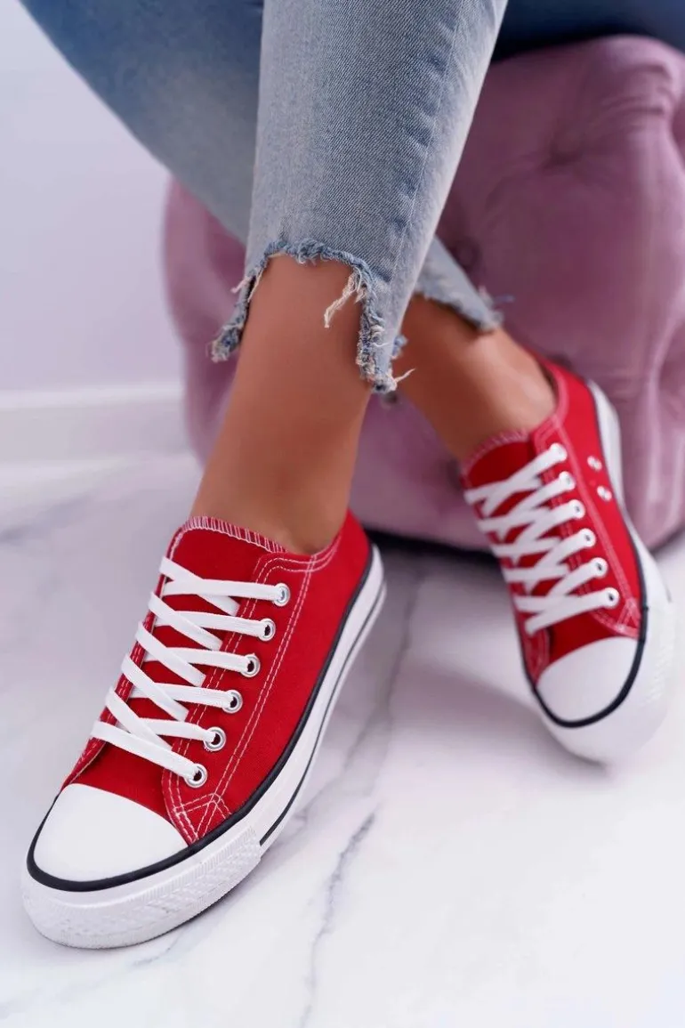 Trampki Damskie Niskie Materiałowe Czerwone FreeTime
