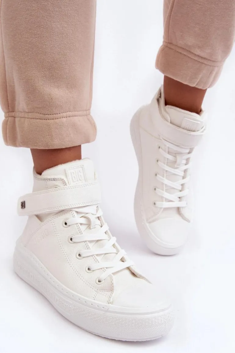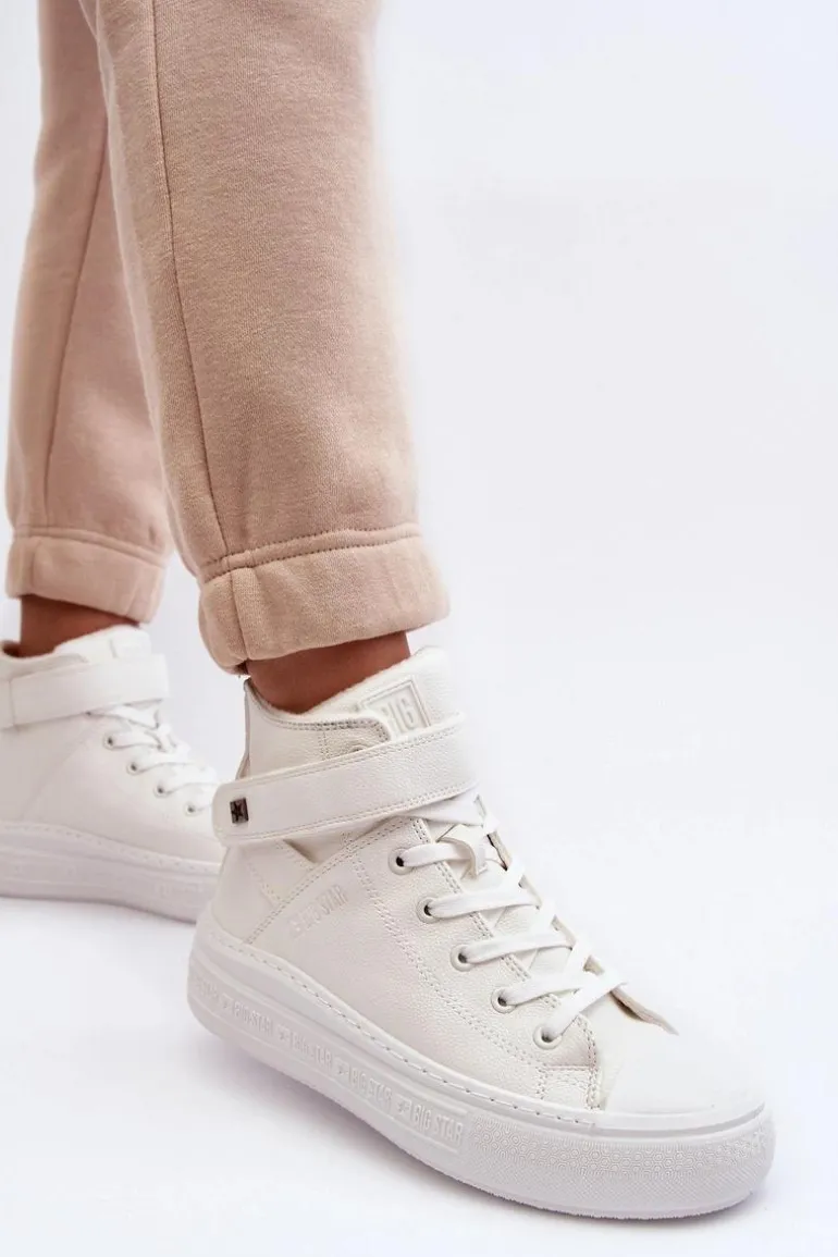 Damskie trampki od marki BIG STAR wykonane z eko skóry. Osadzone na platformie z gumowego tworzywa. Cholewka za kostkę. Model sznurowany z dodatkowym zapięciem na rzep. Noski zaokrąglone, usztywniony zapiętek. Środek ocieplony kocem obuwniczym. Koniecznie sprawdź całą naszą kolekcję butów marki BIG STAR. Przy wyborze rozmiaru prosimy sugerować się tabelą rozmiarów.