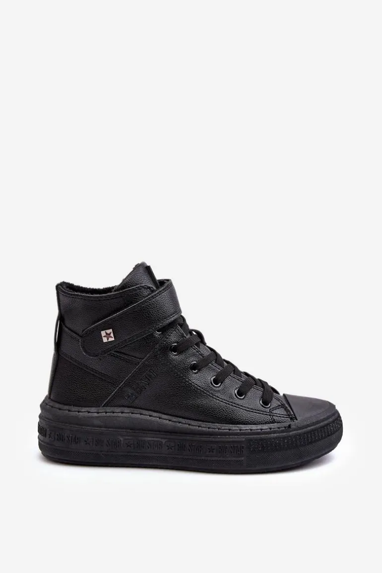Damskie trampki od marki BIG STAR wykonane z eko skóry. Osadzone na platformie z gumowego tworzywa. Cholewka za kostkę. Model sznurowany z dodatkowym zapięciem na rzep. Noski zaokrąglone, usztywniony zapiętek. Środek ocieplony kocem obuwniczym. Koniecznie sprawdź całą naszą kolekcję butów marki BIG STAR. Przy wyborze rozmiaru prosimy sugerować się tabelą rozmiarów.