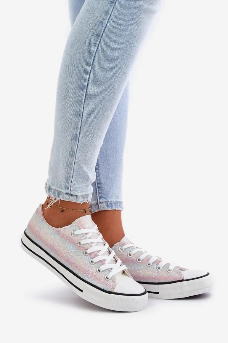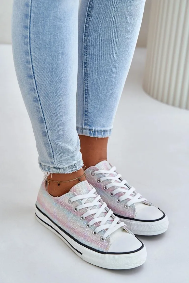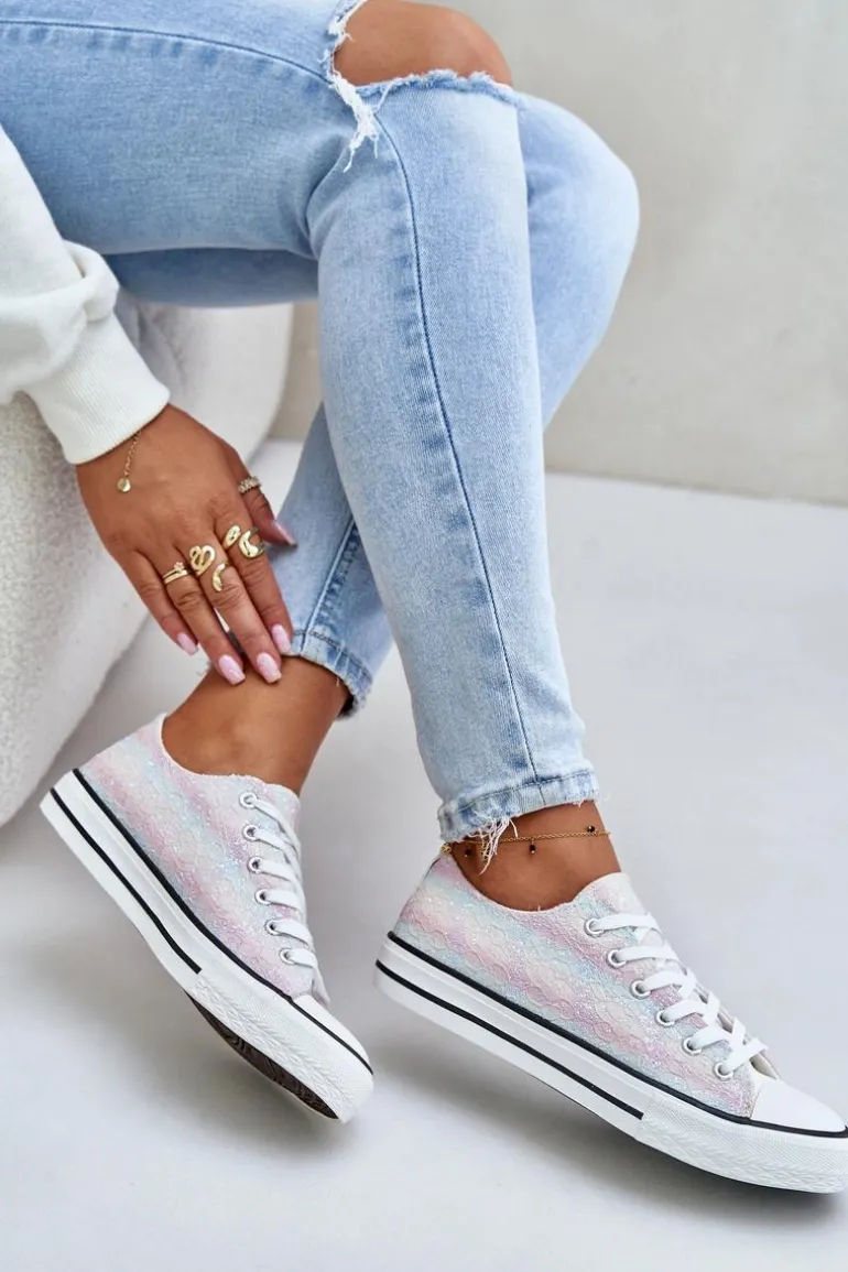 Stylowe trampki damskie ozdobione cekinami, które dodają im wyjątkowego blasku. Model sznurowany, co zapewni idealne dopasowanie do stopy i komfort noszenia. Te modne buty to świetny wybór zarówno na co dzień, jak i na bardziej casualowe wyjścia, dodając każdej stylizacji wyrazistego charakteru. Przy wyborze rozmiaru prosimy sugerować się tabelą rozmiarów.