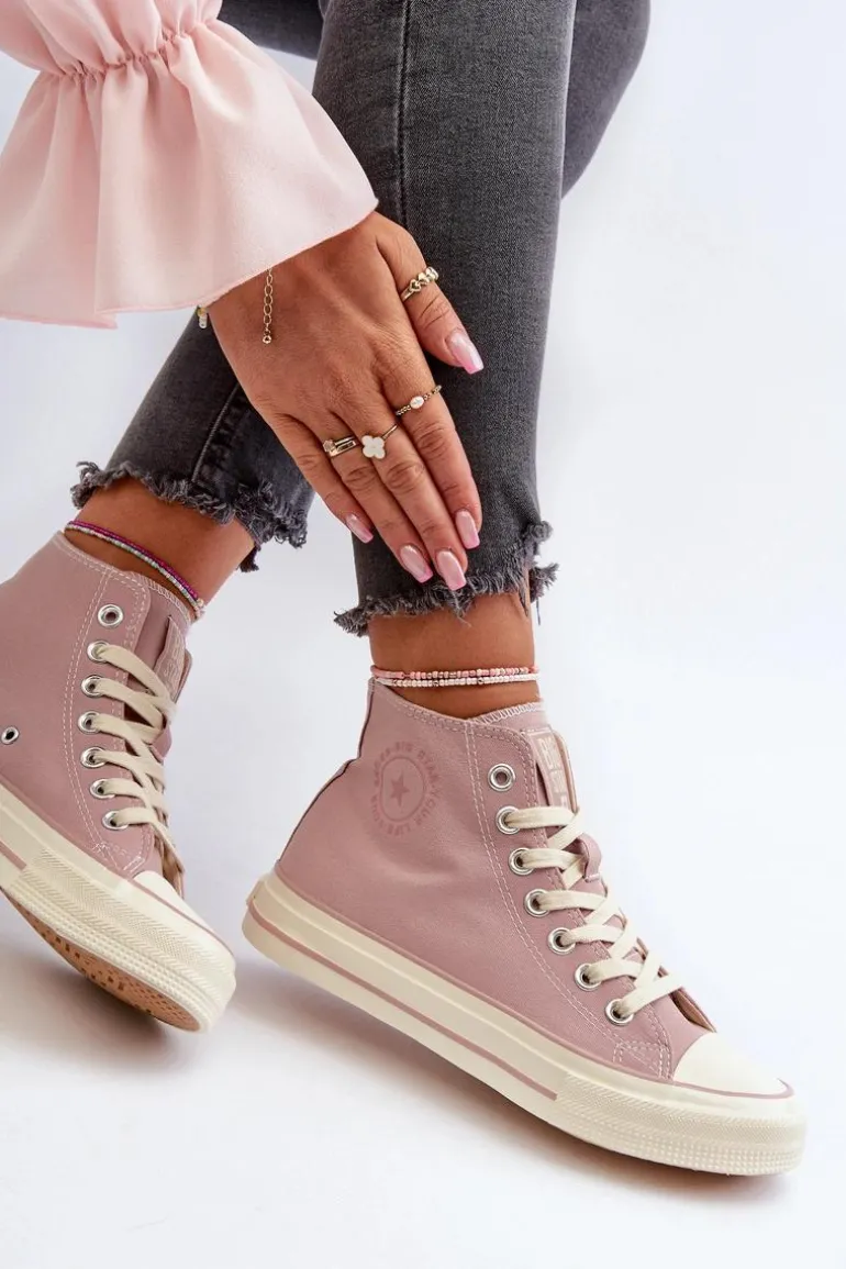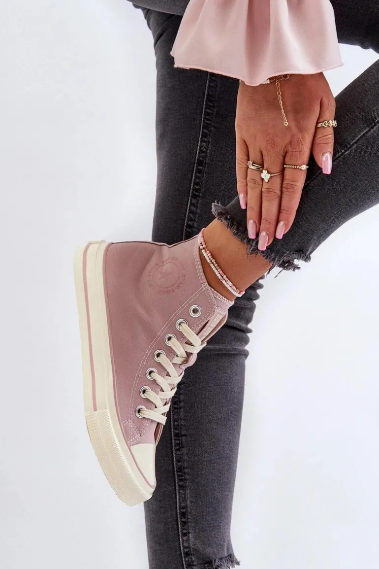 Damskie trampki marki Big Star. Wykonane z wysokiej jakości materiału tekstylnego. Cholewka sięgająca za kostkę dodaje stabilności, co jest szczególnie ważne podczas długich spacerów czy aktywności na świeżym powietrzu. W tych modnych trampkach będziesz czuć się swobodnie i stylowo jednocześnie! Przy wyborze rozmiaru prosimy sugerować się tabelą rozmiarów.