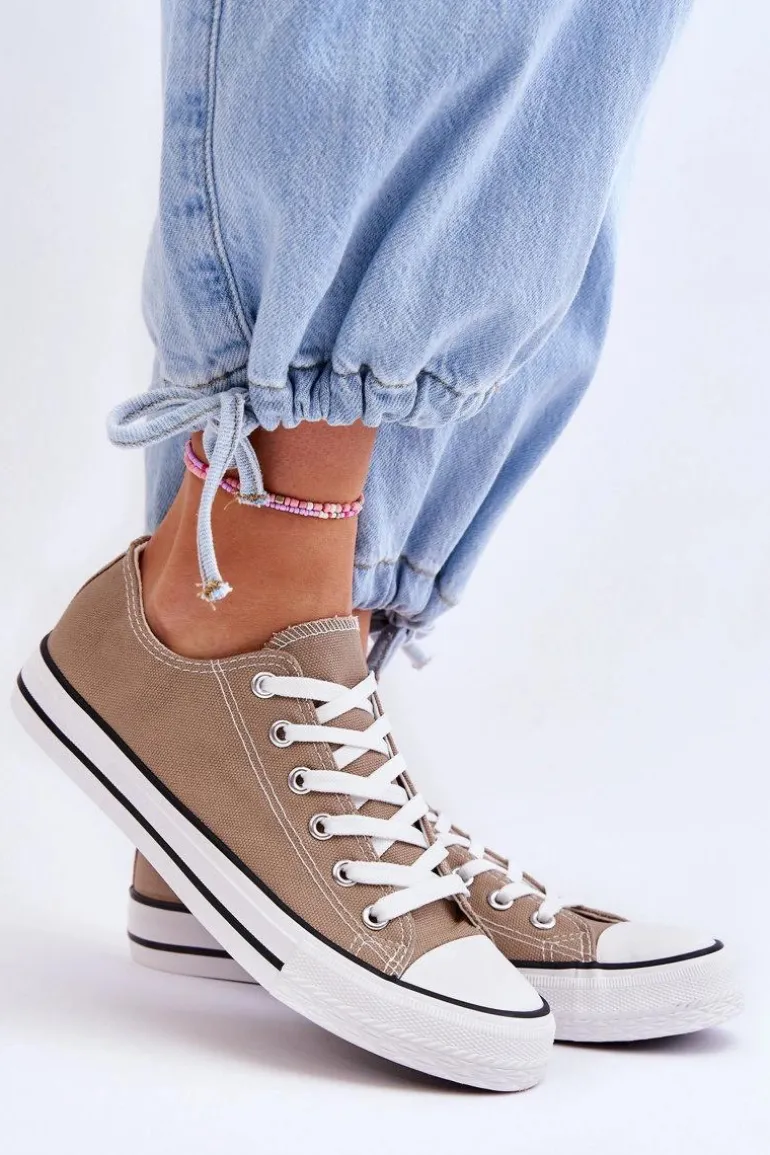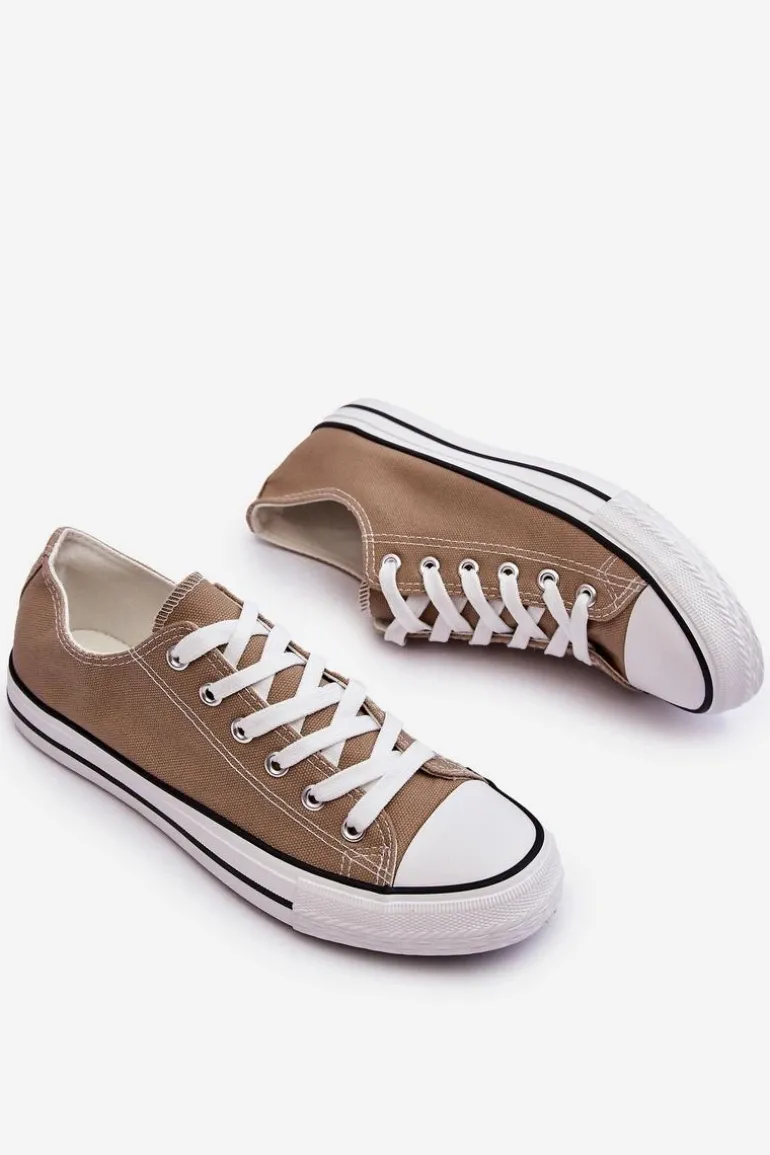 Klasyczne, sznurowane trampki damskie zostały wykonane z materiału tekstylnego. Posiadają gumową podeszwę, która jest dodatkowo antypoślizgowa. Ponadczasowy model, który powinnaś mieć w swojej szafie! Z pewnością założysz je do wielu stylizacji! Nosek został wzmocniony gumowym tworzywem. Wygodna, materiałowa wkładka zapewni komfort podczas użytkowania. Przy wyborze rozmiaru prosimy sugerować się tabelą rozmiarów.