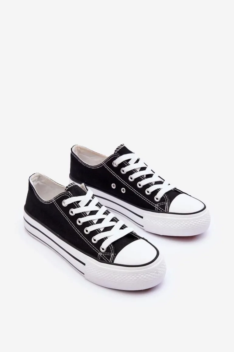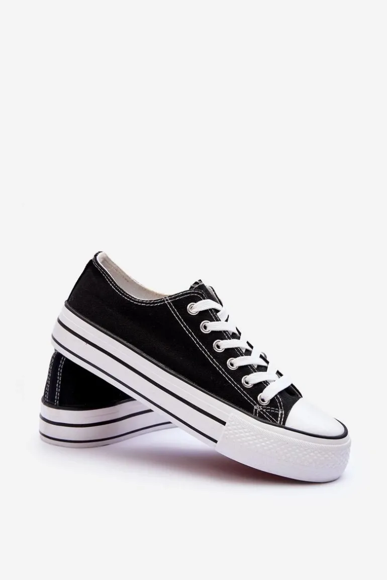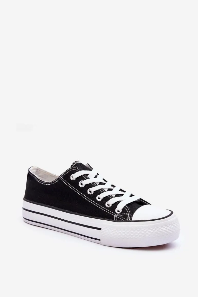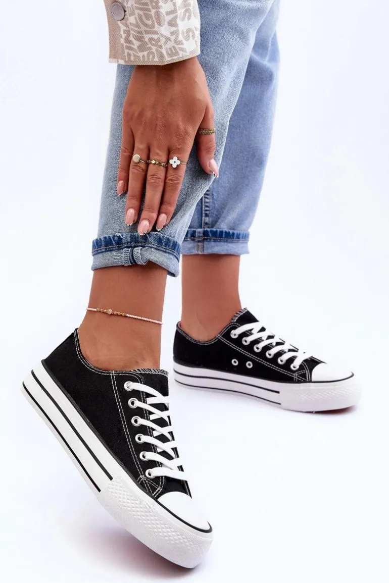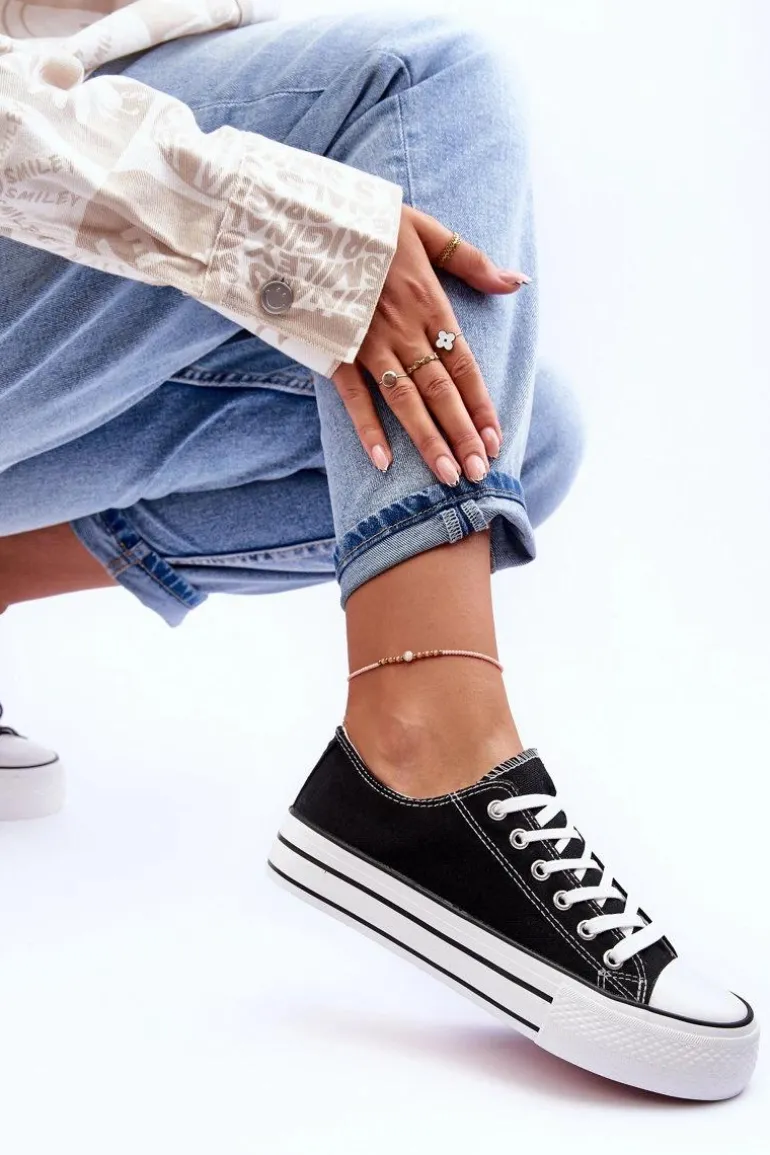 Klasyczne, sznurowane trampki damskie zostały wykonane z materiału tekstylnego. Osadzone na masywnej platformie. Gumowa podeszwa jest antypoślizgowa. Ponadczasowy model, który powinnaś mieć w swojej szafie! Z pewnością założysz je do wielu stylizacji! Nosek został wzmocniony gumowym tworzywem. Przy wyborze rozmiaru prosimy sugerować się tabelą rozmiarów.