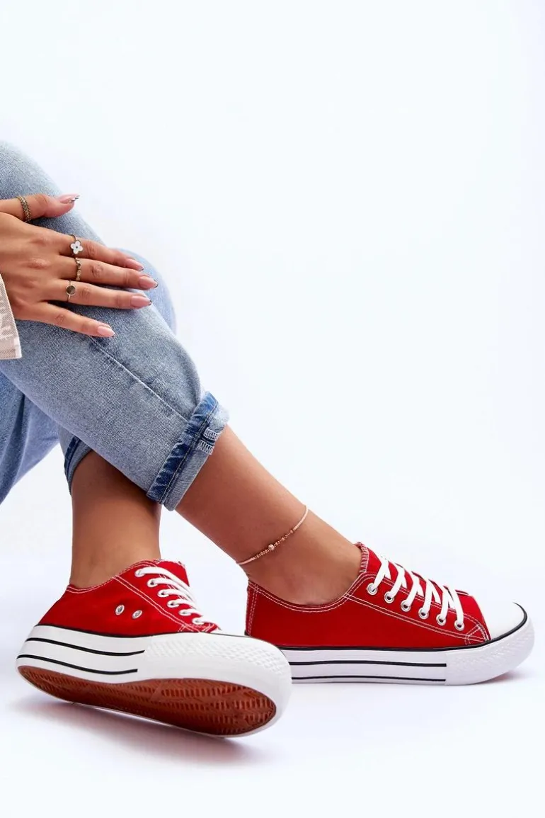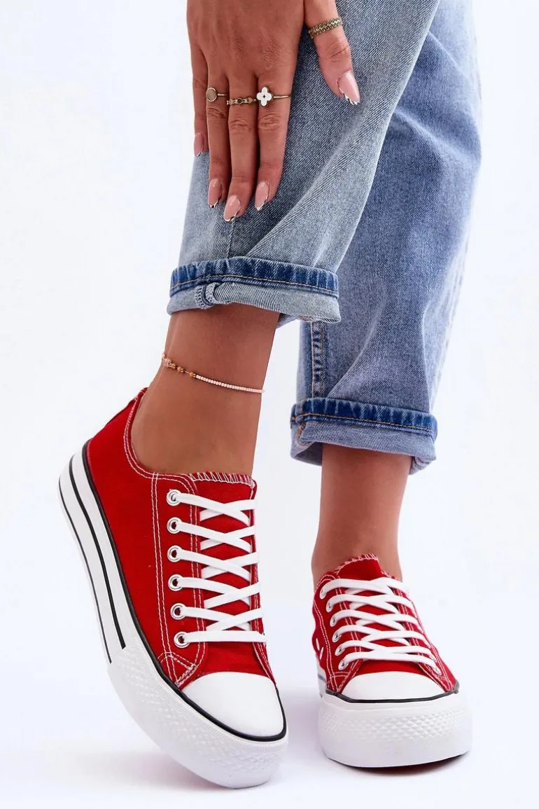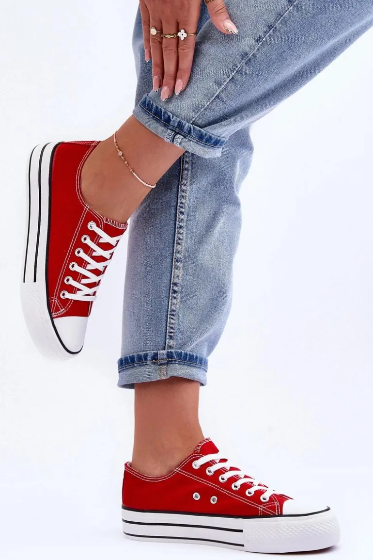 Trampki Klasyczne Niskie Na Platformie Czerwone Jazlyn