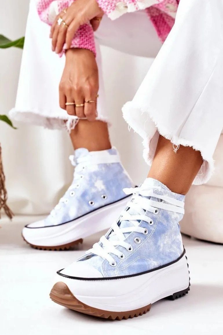 Wyjątkowe trampki na platformie. Buty dobrze dopasowują się do kształtu stopy, posiadają miękką, materiałową wkładkę oraz antypoślizgową podeszwę. Koniecznie sprawdź całą naszą kolekcję trampek! Przy wyborze rozmiaru prosimy sugerować się tabelą rozmiarów.