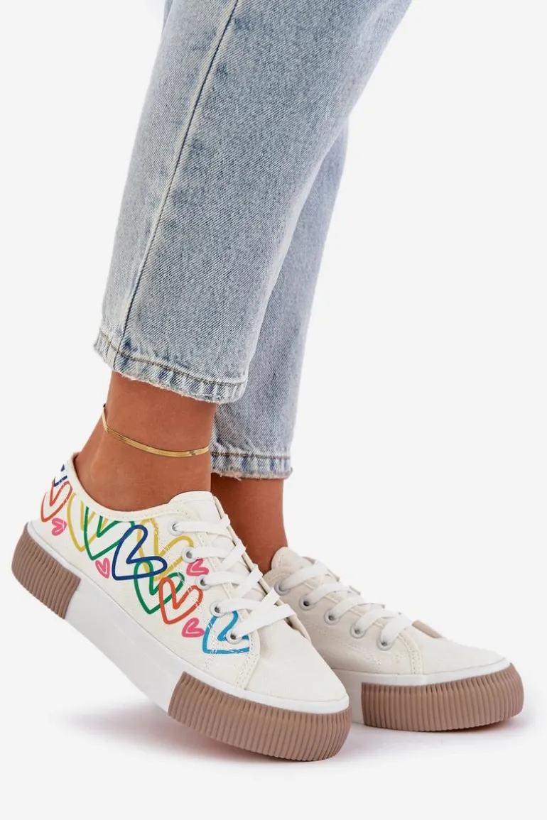 Damskie trampki wykonane z tkaniny to idealna propozycja dla miłośniczek wygody i stylu. Model osadzony na grubszej podeszwie zapewnia komfort noszenia oraz świetnie wpisuje się w najnowsze trendy. Zaokrąglone noski nadają im klasycznego wyglądu, a nadruk serca na cholewce dodaje uroku i oryginalności. Idealne zarówno do codziennych, jak i bardziej casualowych stylizacji! Przy wyborze rozmiaru prosimy sugerować się tabelą rozmiarów.