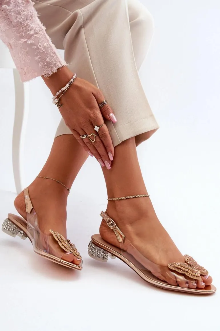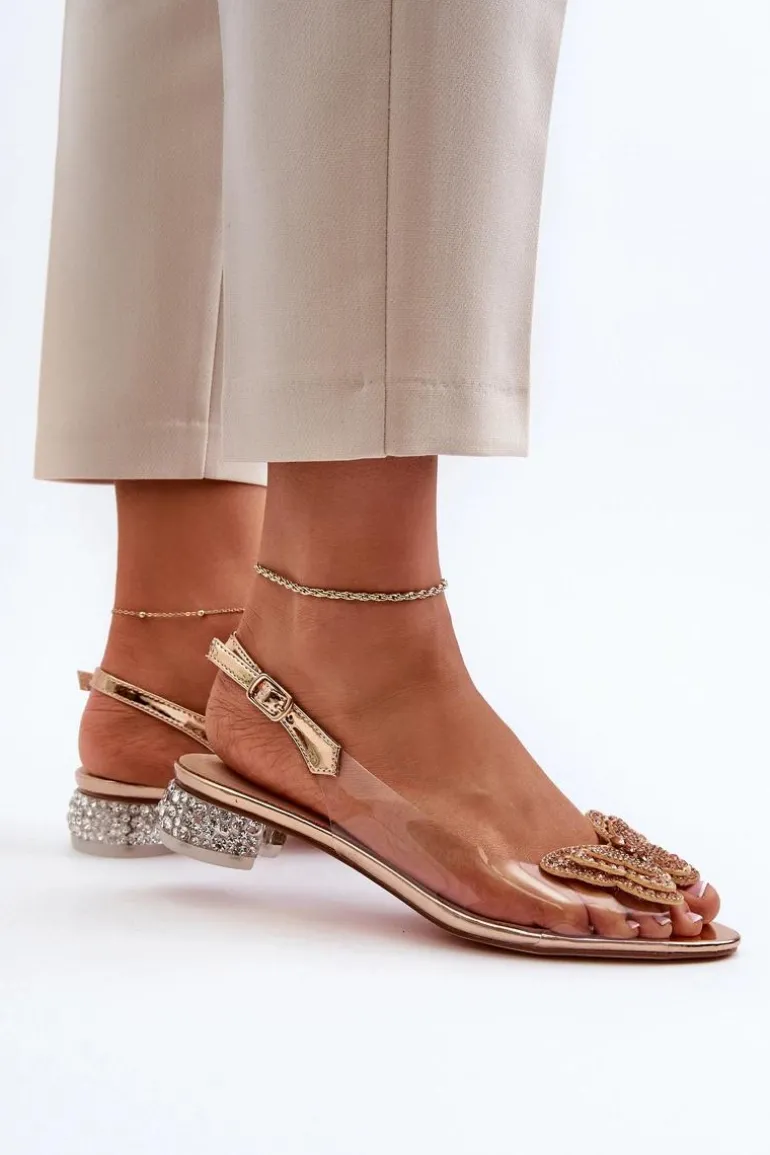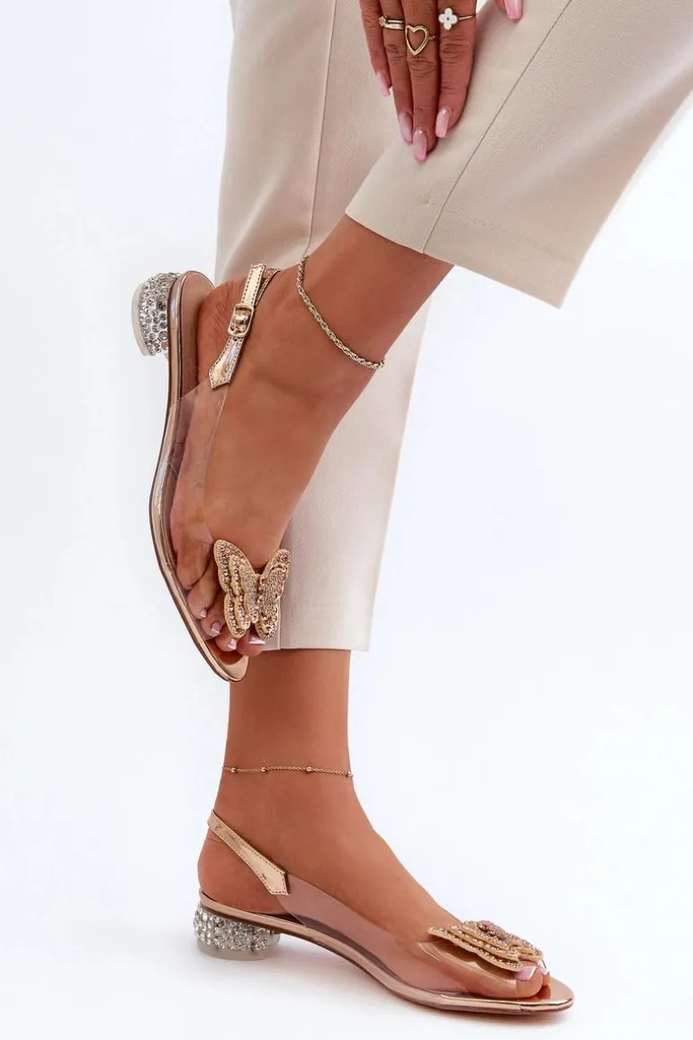 Transparentne Sandały Na Niskim Obcasie Z Motylem Złote D&A MR38-388