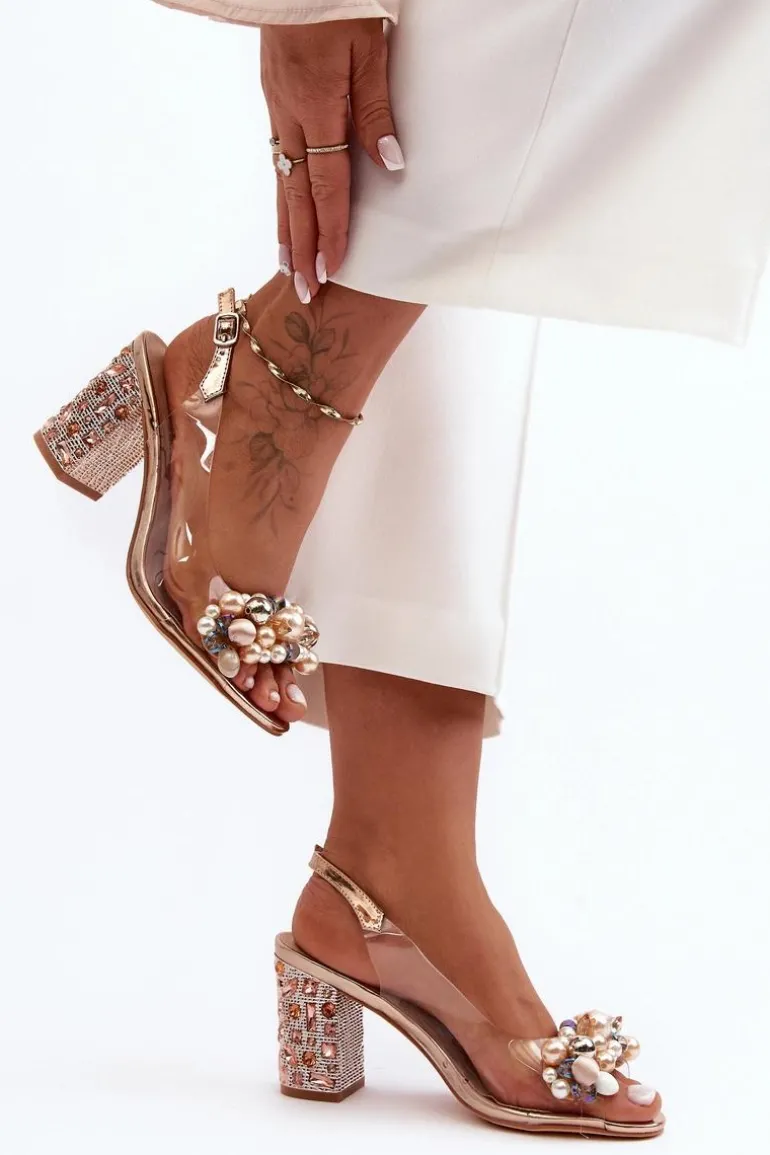 Transparentne Stylowe Sandały Na Słupku Różowe Złoto S.Barski MR1037-17