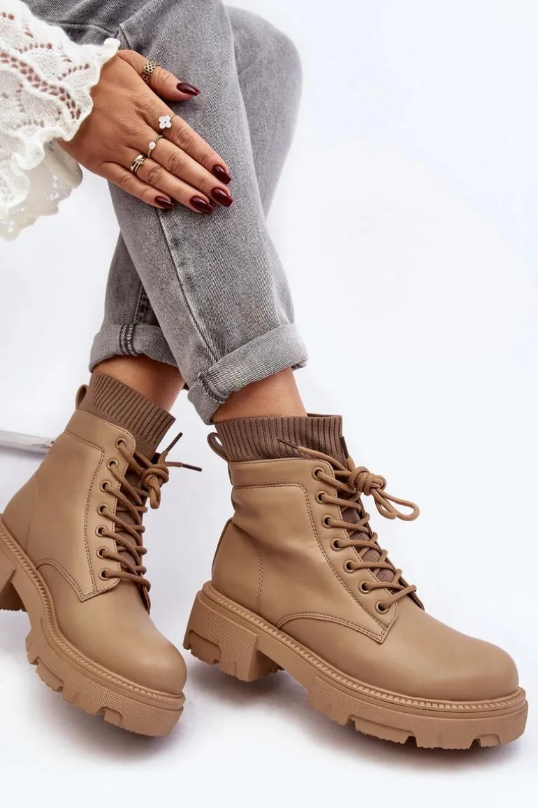 Damskie trapery wykonane z eko skóry. Osadzone na masywnym, płaskim obcasie oraz platformie. Model wsuwany z cholewką za kostkę. Z przodu sznurowanie. Noski zaokrąglone. Usztywniony zapiętek. Ten klasyczny model wykorzystasz do wielu jesienno-zimowych stylizacji! Przy wyborze rozmiaru prosimy sugerować się tabelą rozmiarów.