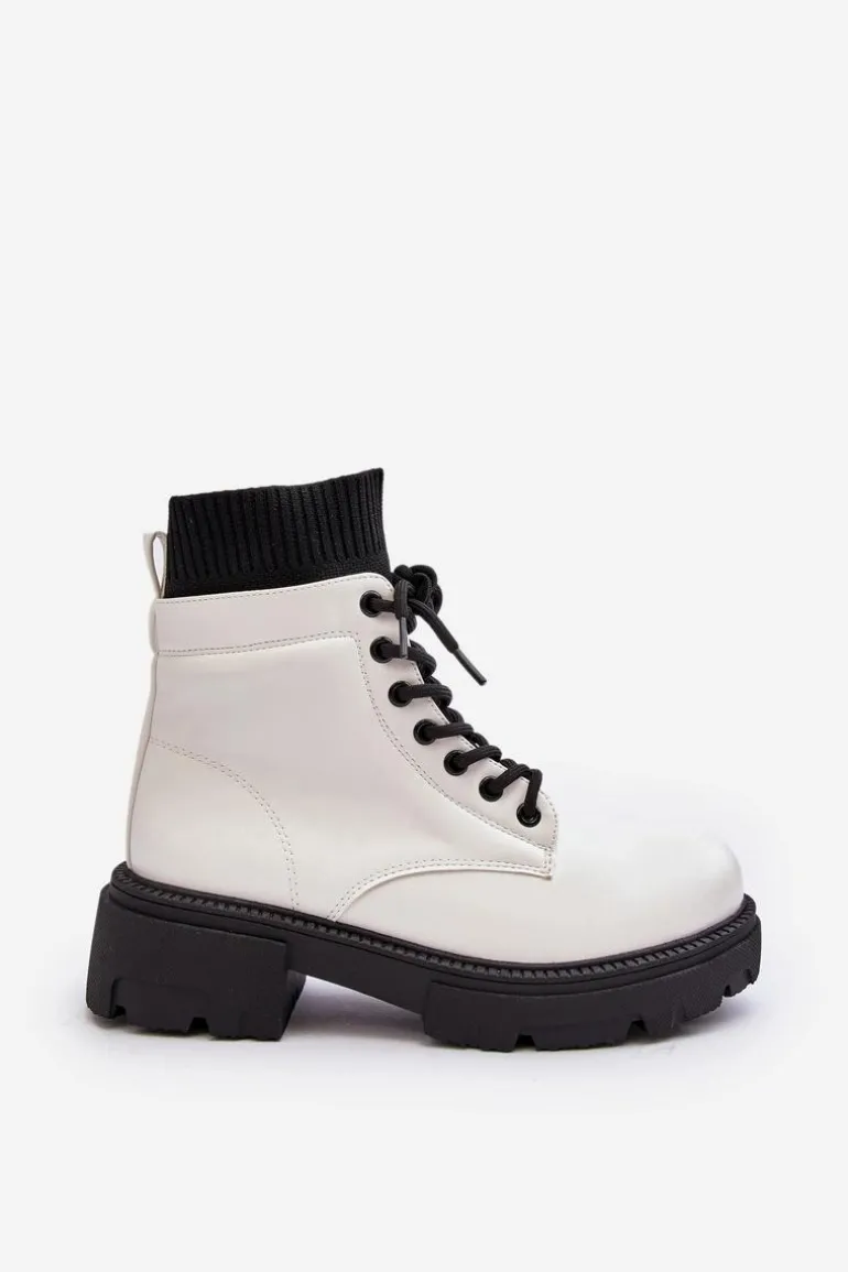 Damskie trapery wykonane z eko skóry. Osadzone na masywnym, płaskim obcasie oraz platformie. Model wsuwany z cholewką za kostkę. Z przodu sznurowanie. Noski zaokrąglone. Usztywniony zapiętek. Ten klasyczny model wykorzystasz do wielu jesienno-zimowych stylizacji! Przy wyborze rozmiaru prosimy sugerować się tabelą rozmiarów.