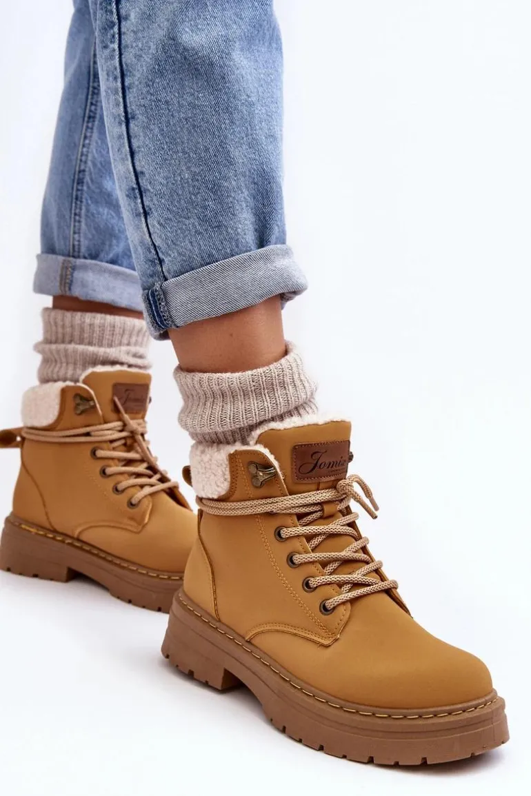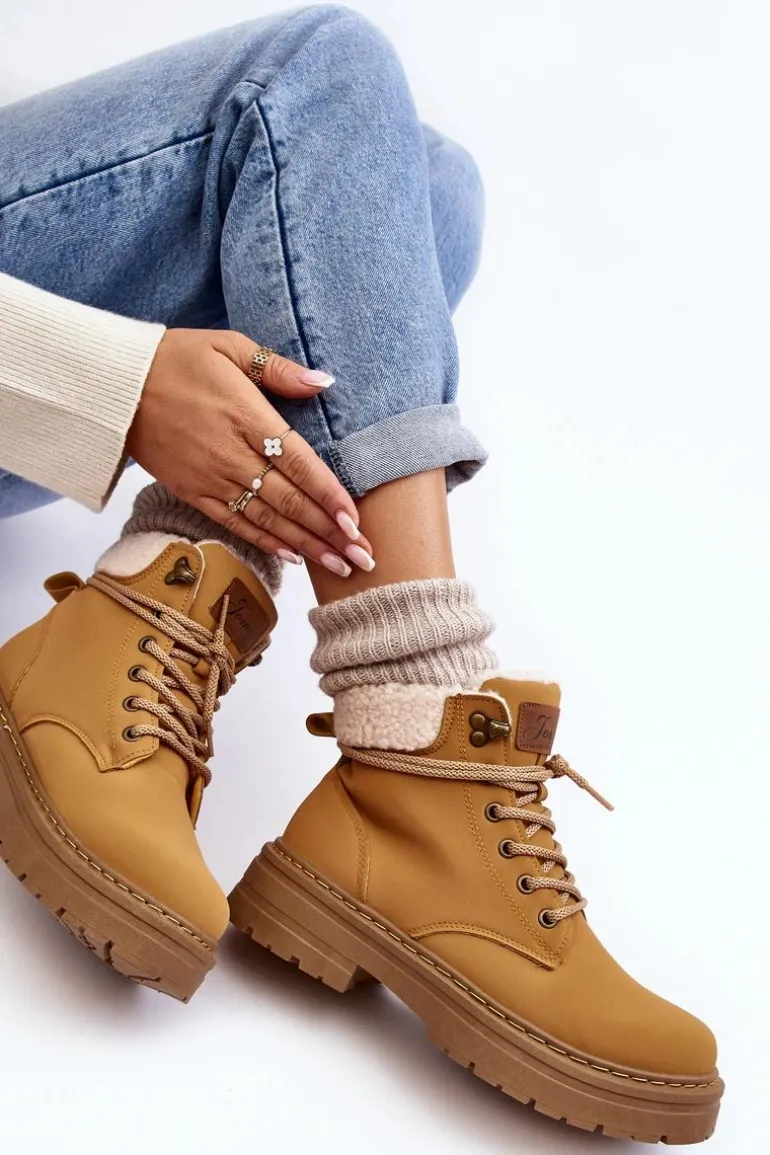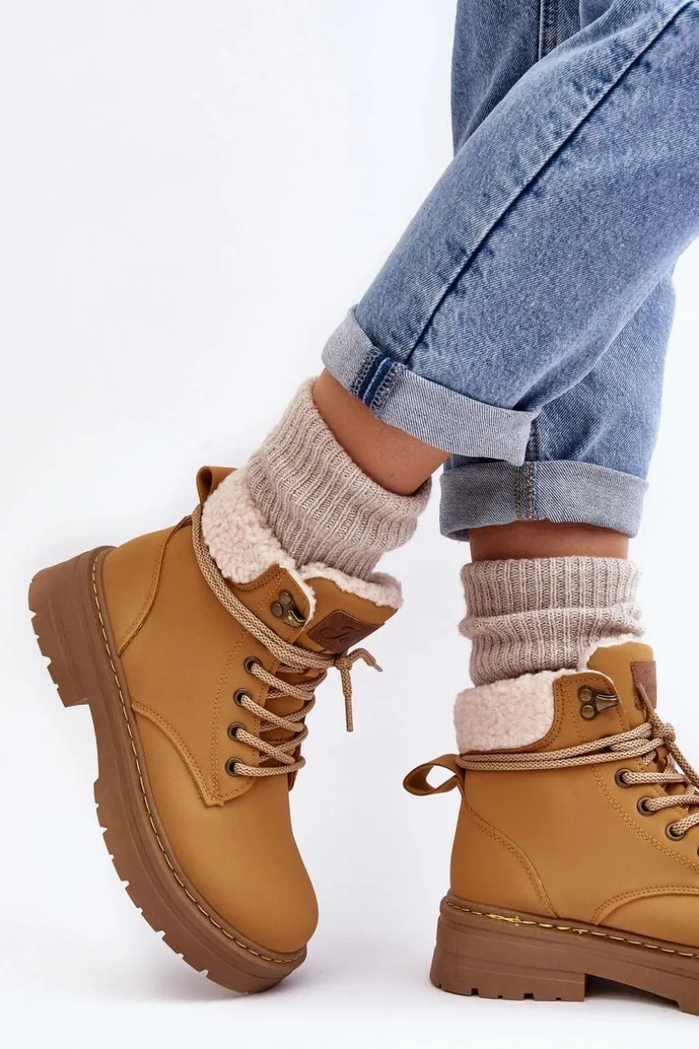 Trapery damskie wykonane z eko skóry. Osadzone na platformie oraz płaskim obcasie z gumowego tworzywa. Góra cholewki oraz wewnętrzna strona języka ocieplona syntetycznym kożuchem. Noski Zaokrąglone. Ten klasyczny model traperów zachwyci każdego! Przy wyborze rozmiaru prosimy sugerować się tabelą rozmiarów.