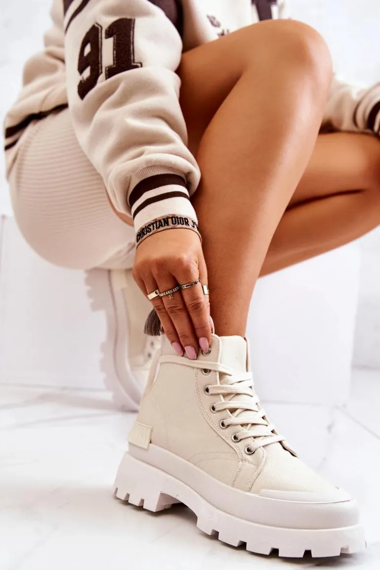 Idealne połączenie trampek i traperów w jednym! Cholewka wykonana z materiału tekstylnego. Wkładka wykonana z tworzywa piankowego oraz materiału. Dodatkowo jest wyciągana. O idealne dopasowanie do nóg zadba solidne sznurowanie. Trapery posiadają wzmocniony gumowy nosek, dzięki czemu są bardziej odporne na uszkodzenia mechaniczne. Koniecznie sprawdź całą naszą kolekcję botków. Przy wyborze rozmiaru prosimy sugerować się tabelą rozmiarów.