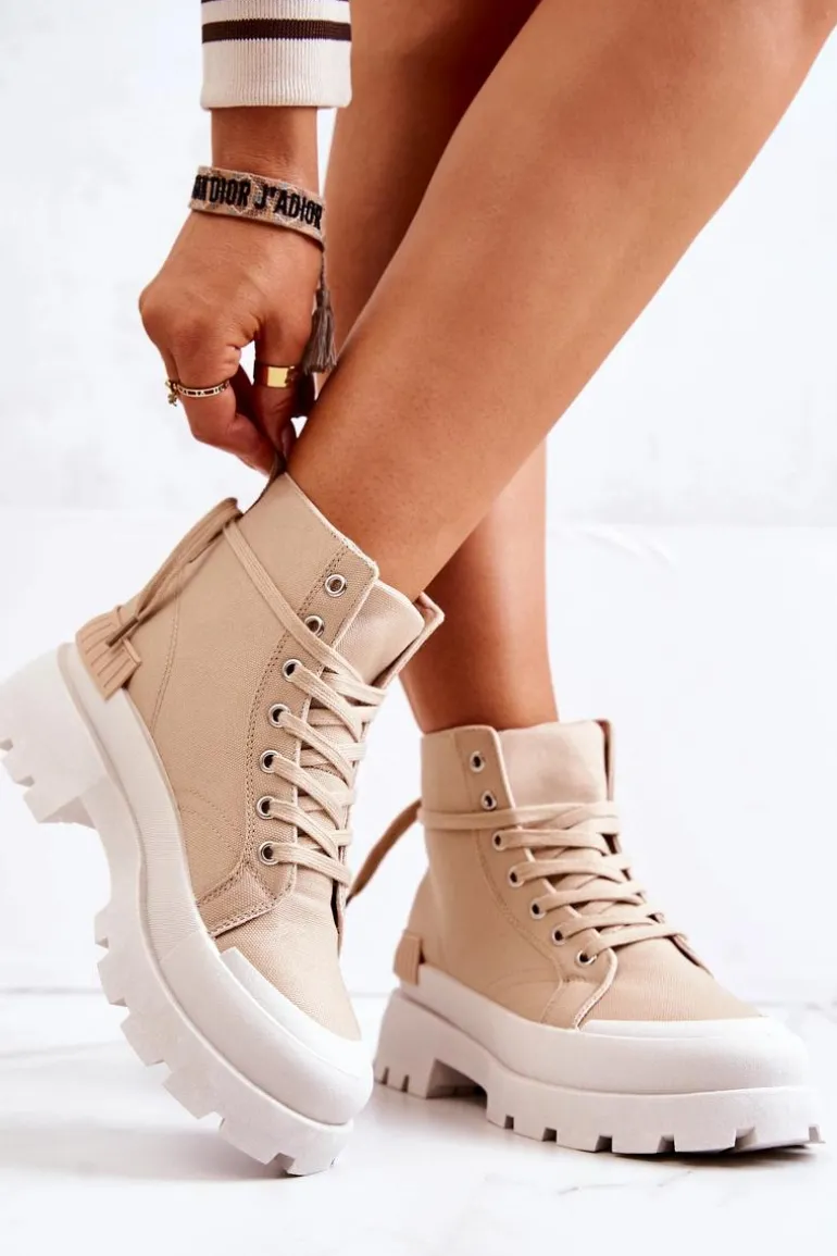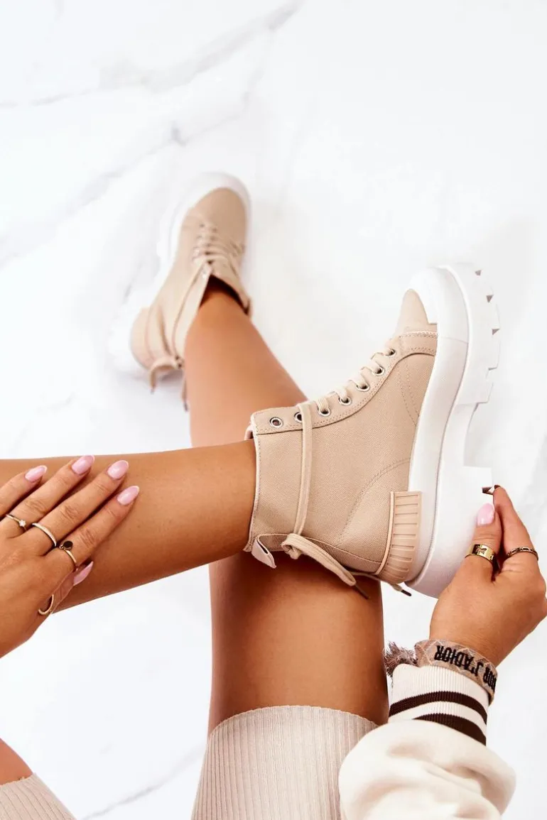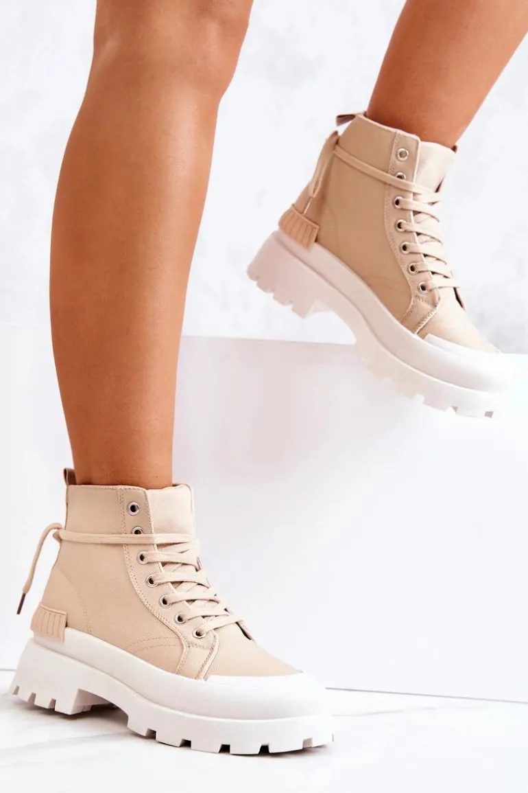 Idealne połączenie trampek i traperów w jednym! Cholewka wykonana z materiału tekstylnego. Wkładka wykonana z tworzywa piankowego oraz materiału. Dodatkowo jest wyciągana. O idealne dopasowanie do nóg zadba solidne sznurowanie. Trapery posiadają wzmocniony gumowy nosek, dzięki czemu są bardziej odporne na uszkodzenia mechaniczne. Koniecznie sprawdź całą naszą kolekcję botków. Przy wyborze rozmiaru prosimy sugerować się tabelą rozmiarów.