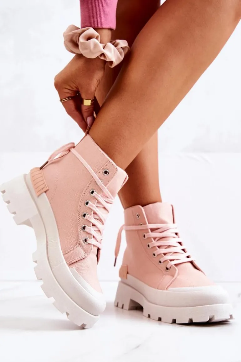 Idealne połączenie trampek i traperów w jednym! Cholewka wykonana z materiału tekstylnego. Wkładka wykonana z tworzywa piankowego oraz materiału. Dodatkowo jest wyciągana. O idealne dopasowanie do nóg zadba solidne sznurowanie. Trapery posiadają wzmocniony gumowy nosek, dzięki czemu są bardziej odporne na uszkodzenia mechaniczne. Koniecznie sprawdź całą naszą kolekcję botków. Przy wyborze rozmiaru prosimy sugerować się tabelą rozmiarów.