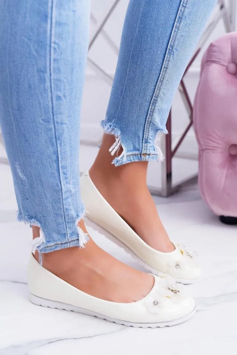 Vices | Lakierowane Pastelowe Damskie Balerinki Z Kwiatkiem Neli