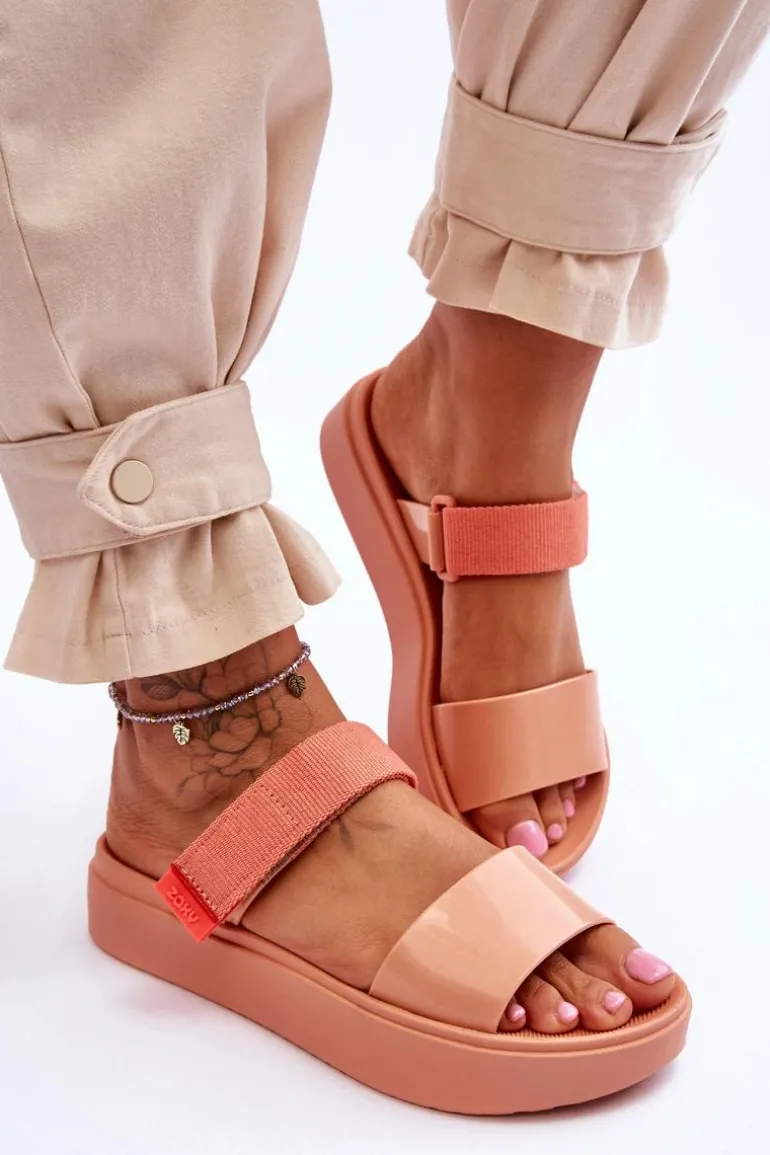 Wegańskie Klapki Na Rzep ZAXY HH285283 Pomarańczowe