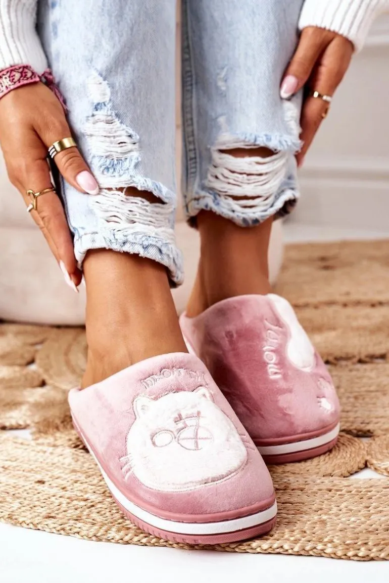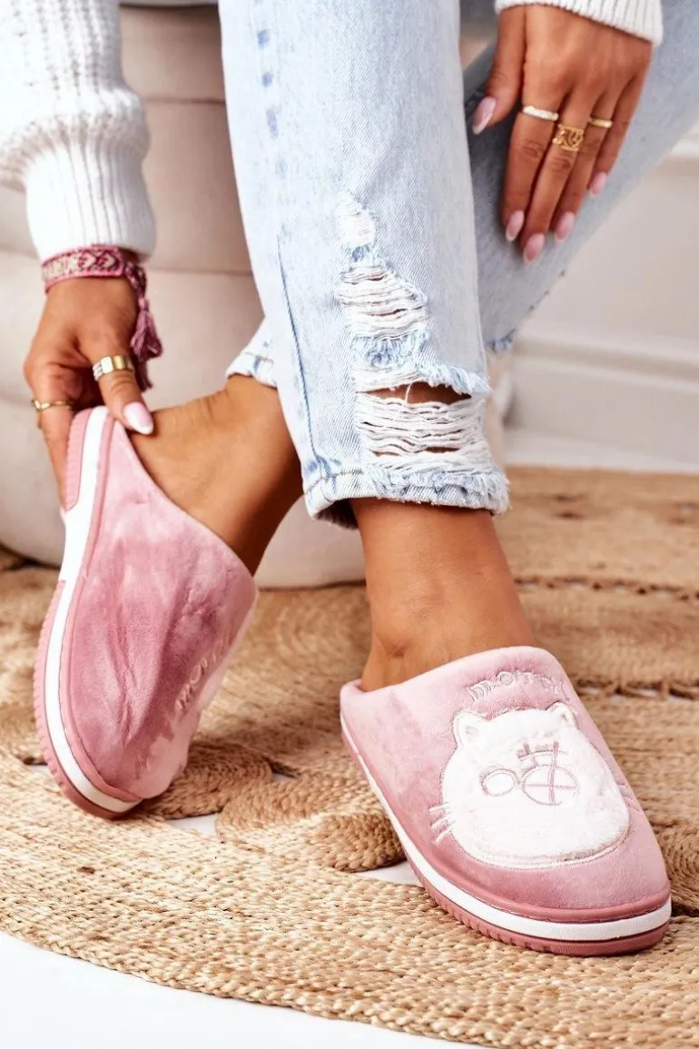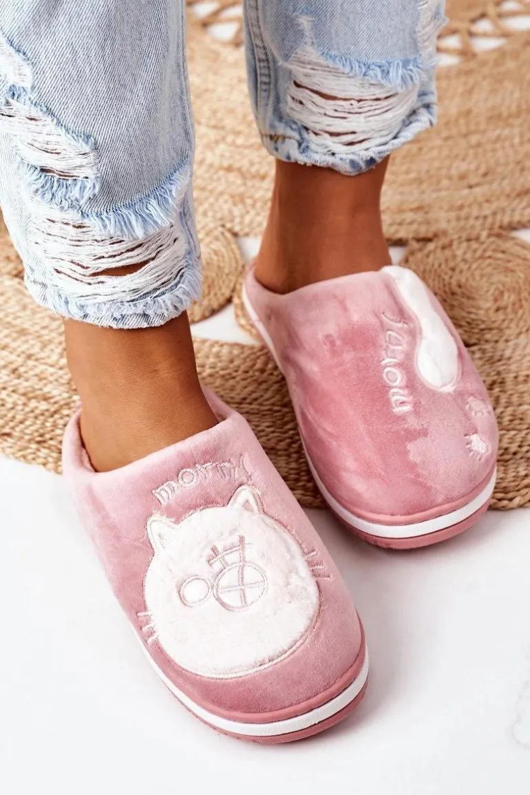 Welurowe Papcie Z Kotem Ciemnoróżowe Good Morning