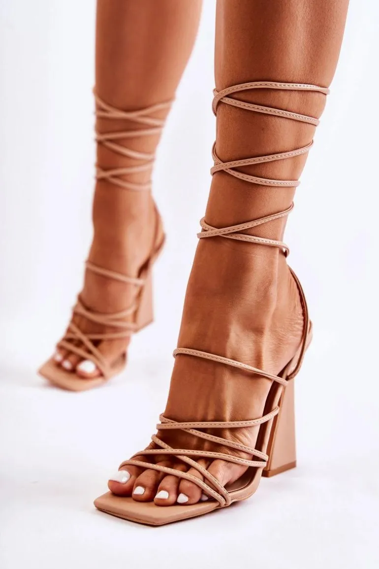 Wygodne i wyjątkowe sandały to marzenie każdej z nas. Buty te zostały wykonane z eko skóry. Posiadają wiązanie wokół łydki zakończone metalowymi elementami. Miękka wkładka wykonana z eko skóry zapewni komfort przez długi czas. Modny obcas o nieregularnym kształcie. Dzięki cienkim paseczkom model jest niezwykle przewiewny. Nosek odkryty, kwadratowy. Przy wyborze rozmiaru prosimy sugerować się tabelą rozmiarów.