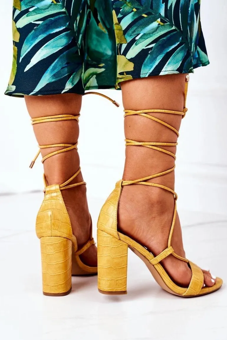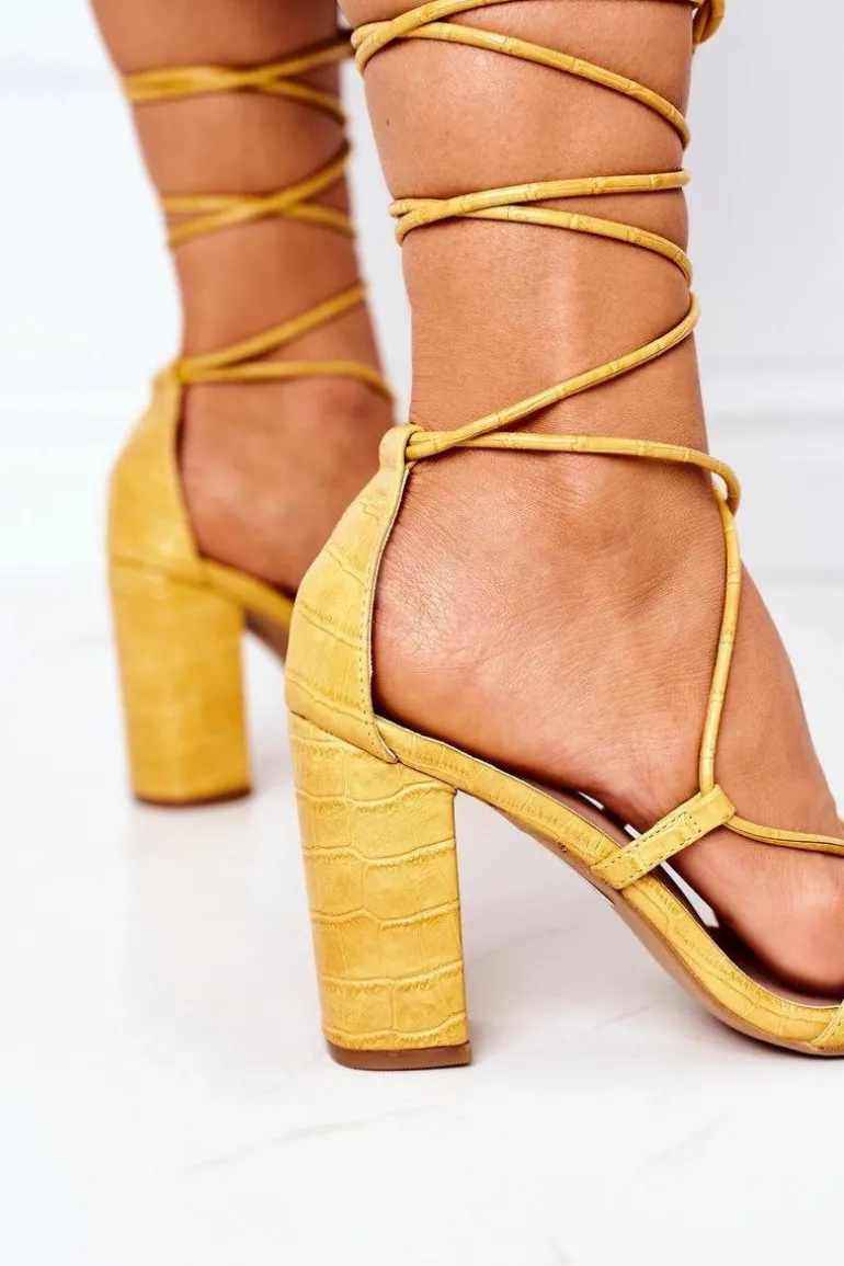 Wiązane Sandały Na Słupku Żółte Catwalk