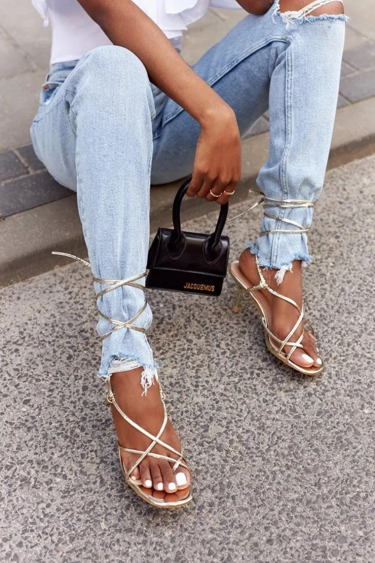 Wyjątkowe sandały na szpilce z wiązaniem wokół kostki. Buty wykonane są z eko skóry, posiadają antypoślizgową podeszwę. Kwadratowy nosek to najmodniejszy fason w tym sezonie! Przy wyborze rozmiaru prosimy kierować się tabelą rozmiarów.