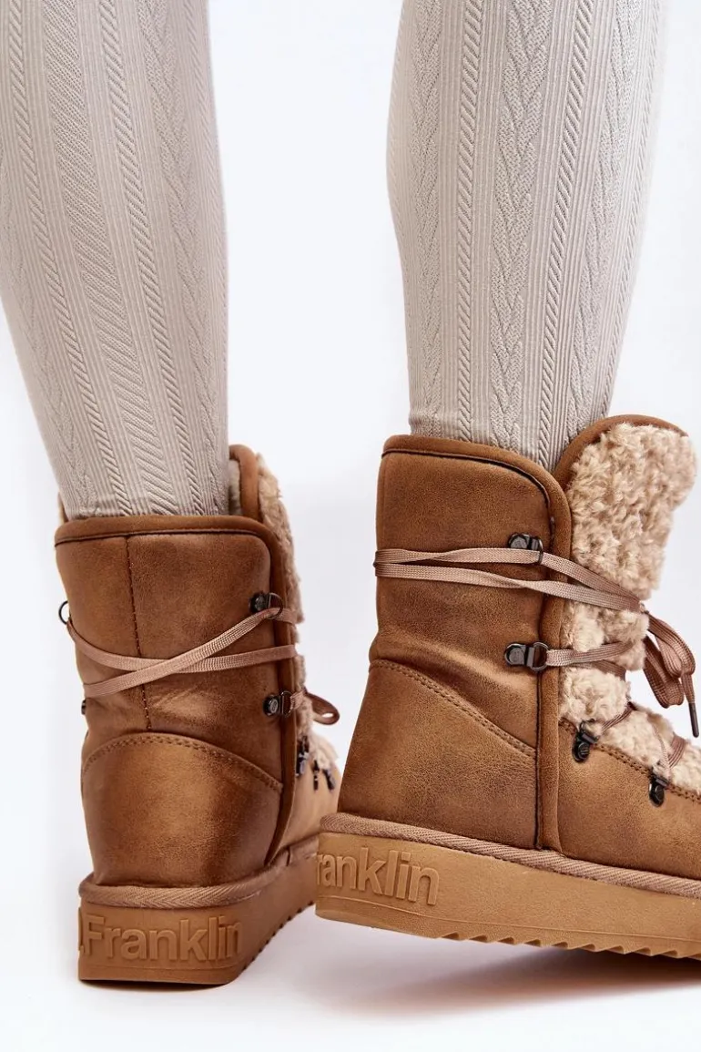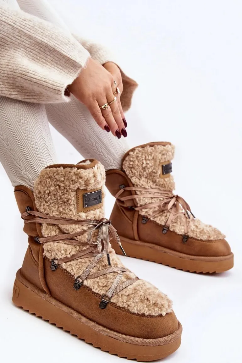 Śniegowce damskie wykonane z wysokiej jakości wodoodpornej tkaniny z mikrofibry. Osadzone na grubej antypoślizgowej podeszwie. Środek oraz przód ocieplony syntetycznym futerkiem. Model ten przeznaczony jest na najmroźniejsze dni. Śniegowce są wsuwane z dodatkowym wiązaniem. Wegańskie. Przy wyborze rozmiaru prosimy sugerować się tabelą rozmiarów.