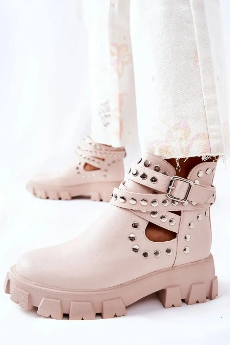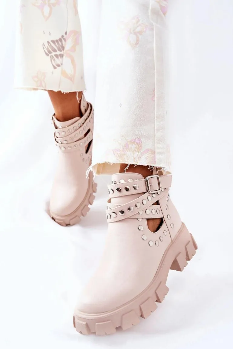 Wierzch botków wykonany jest ze skóry ekologicznej, natomiast wnętrze pokryte jest materiałem tekstylnym. Botki są wsuwane. Posiadają sprzączkę z regulowanym paskiem. Cholewka jest przyozdobiona dżetami, a na jej całości znajdują się efektowne wycięcia. Sprawdź pozostałą naszą kolekcję botków! Przy wyborze rozmiaru prosimy sugerować się tabelą rozmiarów.