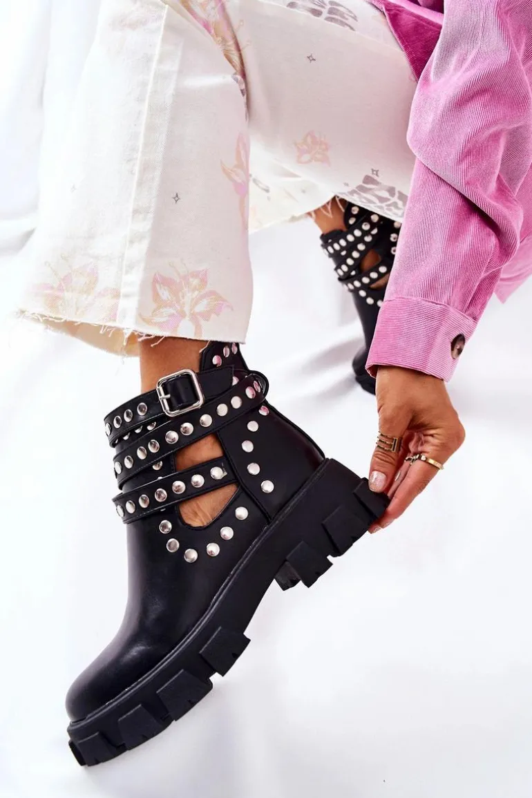 Wierzch botków wykonany jest ze skóry ekologicznej, natomiast wnętrze pokryte jest materiałem tekstylnym. Botki są wsuwane. Posiadają sprzączkę z regulowanym paskiem. Cholewka jest przyozdobiona dżetami, a na jej całości znajdują się efektowne wycięcia. Sprawdź pozostałą naszą kolekcję botków! Przy wyborze rozmiaru prosimy sugerować się tabelą rozmiarów.