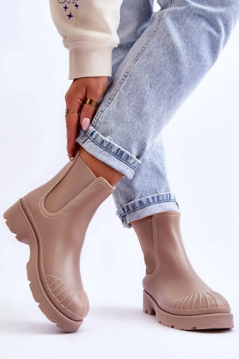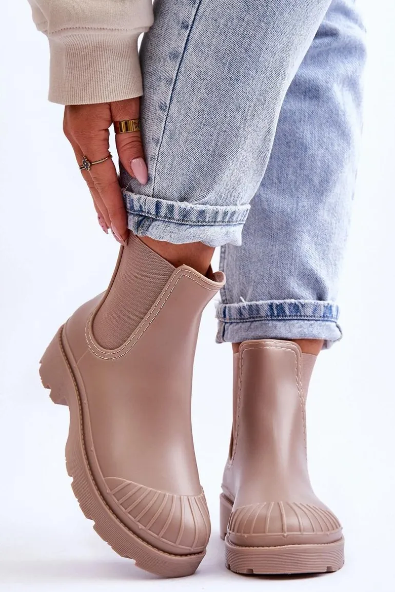 Wsuwane Gumowe Botki Kalosze Sztyblety Beżowe Carme