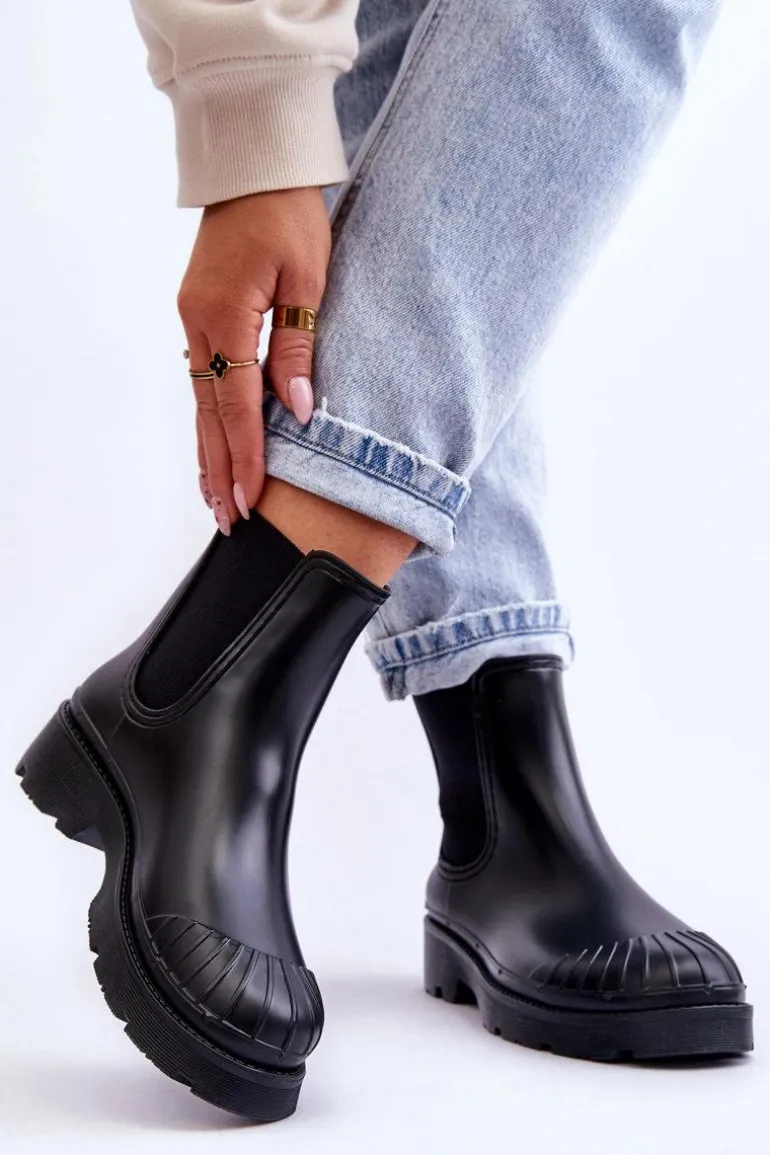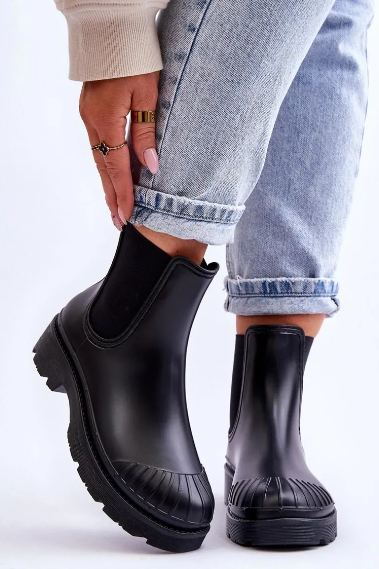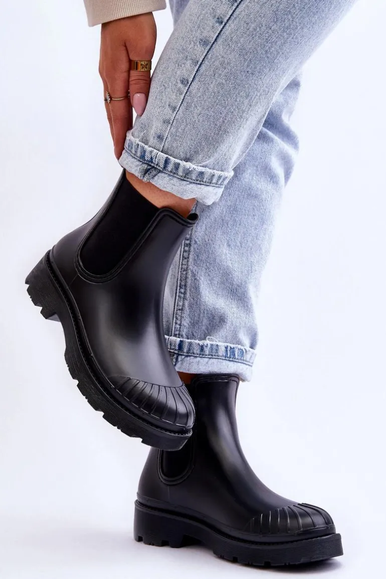 Botki zostały wykonane z gumowego tworzywa. Posiadają zdobienie na nosku. Wewnątrz obuwia wkładka została wykonana z tkaniny. Płaski obcas oraz niska platforma zapewnią stabilność na każdym kroku. Świetny model na sezon wiosenno-jesienny. Koniecznie powinnaś mieć te sztyblety w swojej szafie! Przy wyborze rozmiaru prosimy sugerować się tabelą rozmiarów.