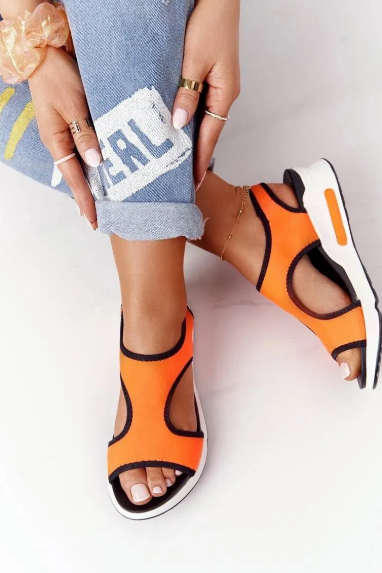 Sandały na koturnie w sportowym stylu. Elastyczna cholewka zapewni dopasowanie do stopy, a modny kolor urozmaici Twoją garderobę! Przy wyborze rozmiaru prosimy sugerować się tabelą rozmiarów.