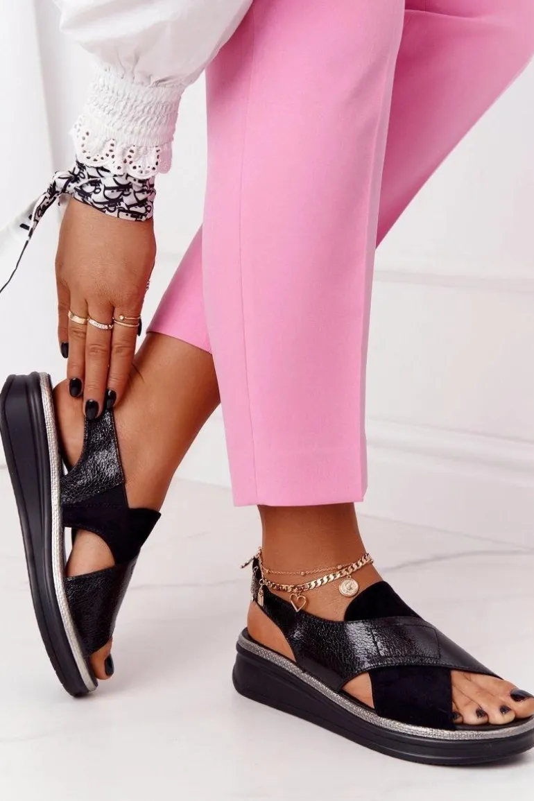 Wyjątkowe sandały damskie marki SERGIO LEONE. Buty wykonane są z połączenia lakierowanej skóry ekologicznej oraz eko zamszu. Miękka wkładka oraz delikatny koturn zadbają o Twoją wygodę! Koniecznie sprawdź całą naszą kolekcję butów marki SERGIO LEONE. Przy wyborze rozmiaru prosimy kierować się tabelą rozmiarów.